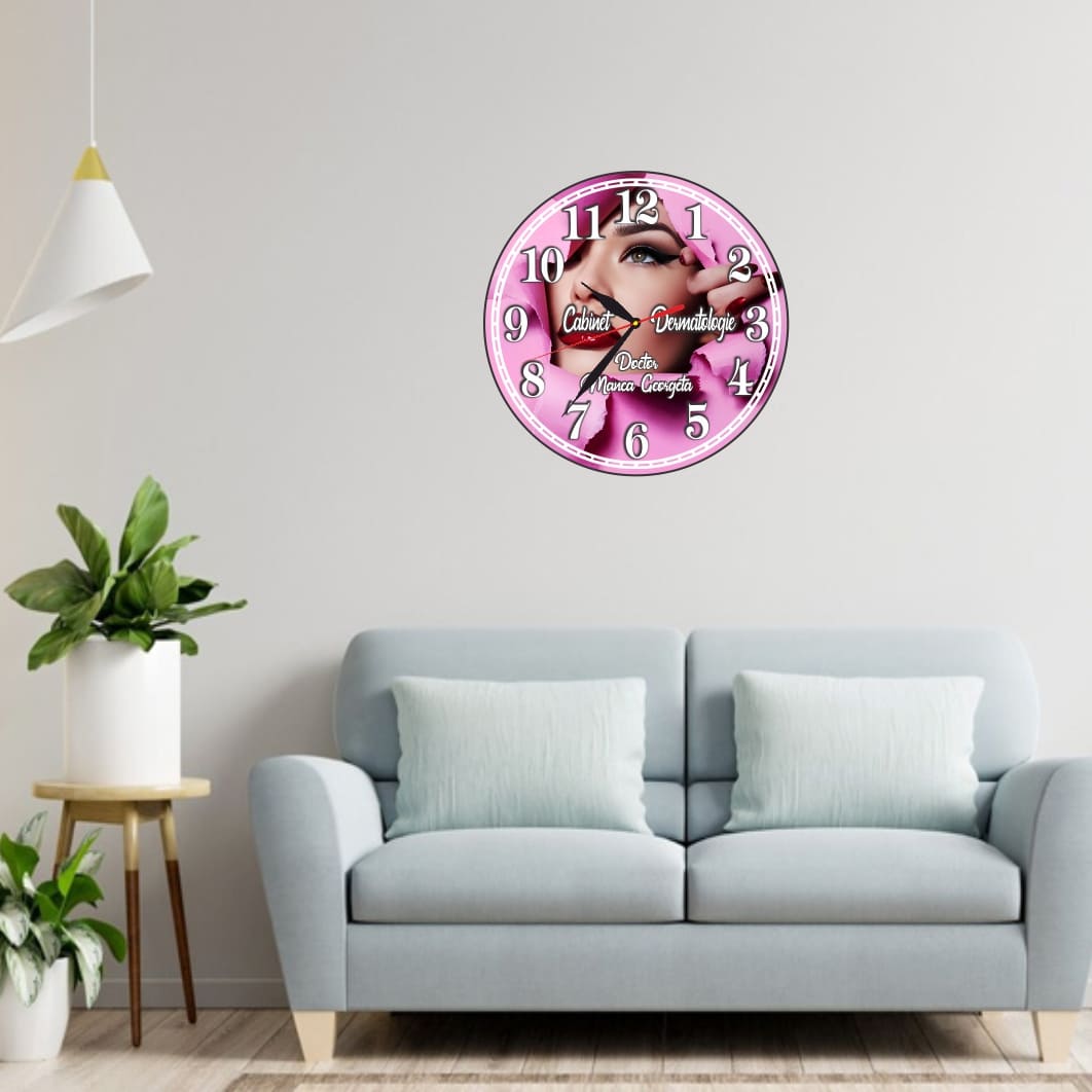 Ceas personalizat pentru Cabinet Dermatologie, Lemn, 40 cm, CDRUV026