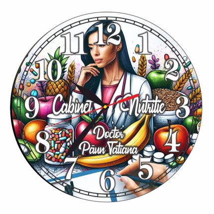 Ceas personalizat pentru Cabinet Nutritie , Lemn, 40 cm, CDRUV034 Prețul inițial a fost: 79,99 lei.Prețul curent este: 54,99 lei.