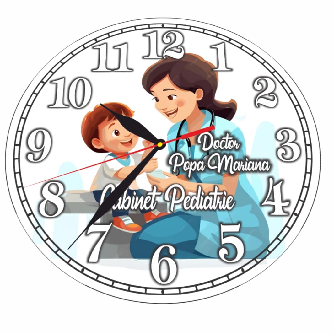Ceas personalizat pentru Cabinet Pediatrie, Lemn, 40 cm, CDRUV047 Prețul inițial a fost: 79,99 lei.Prețul curent este: 54,99 lei.