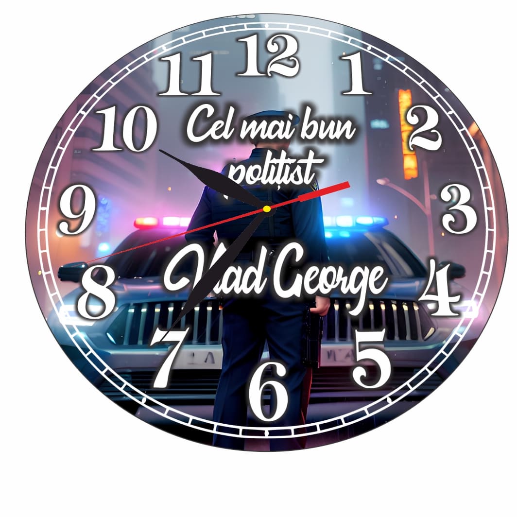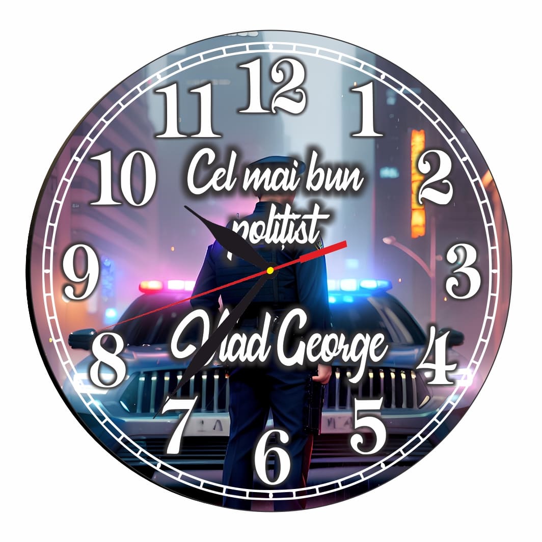 Ceas Politist, Personalizat, Lemn, 40 cm, CMSUV127