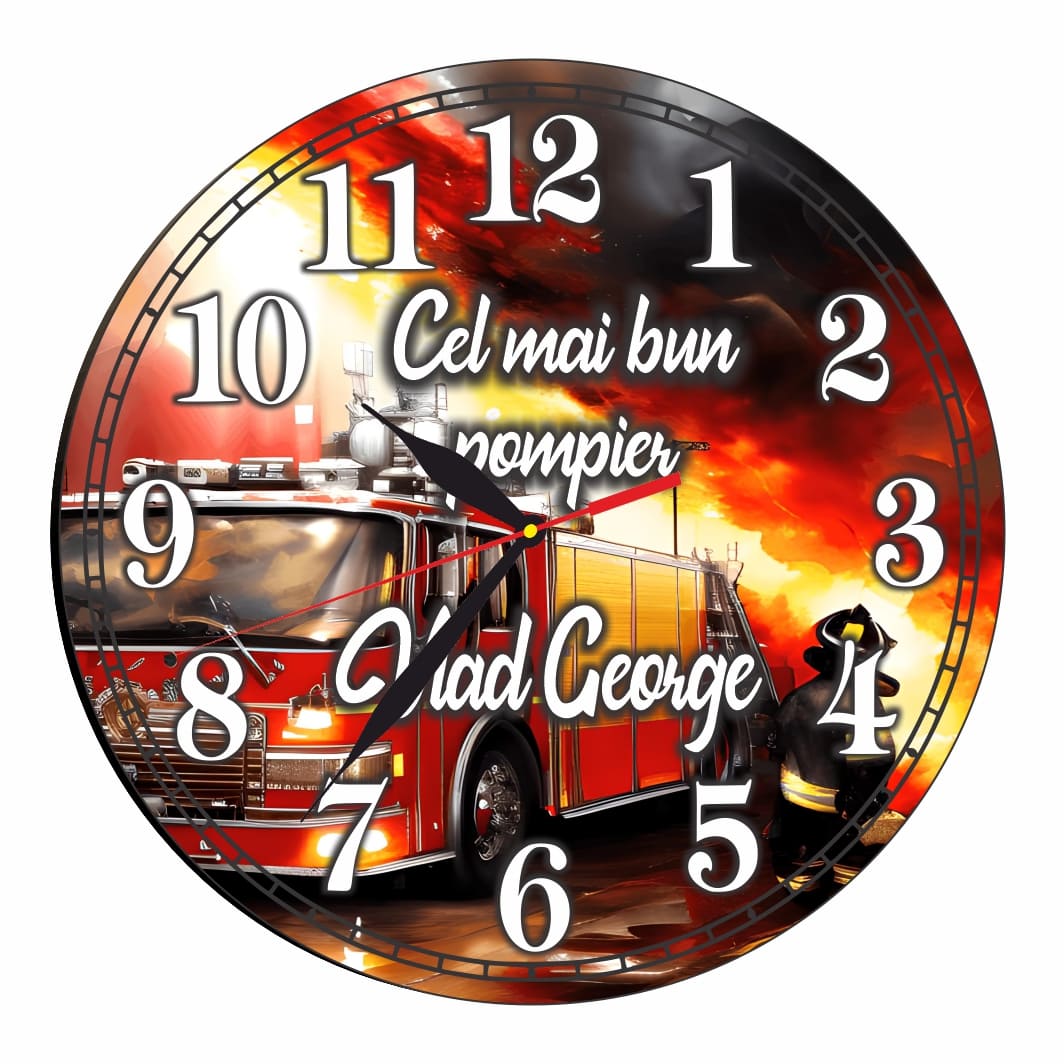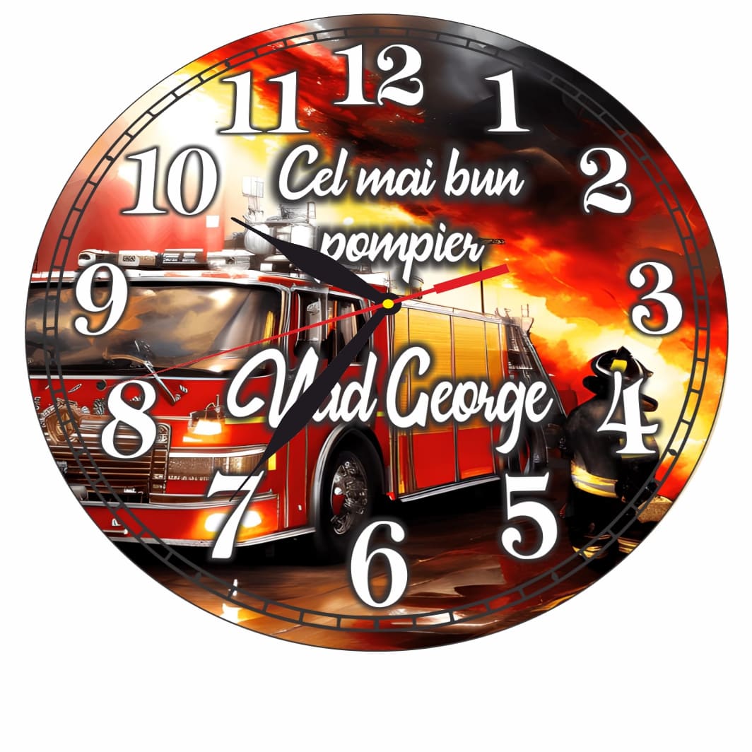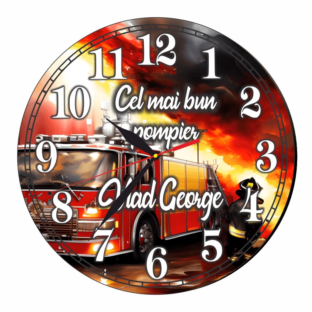 Ceas Pompier, Personalizat, Lemn, 40 cm, CMSUV117