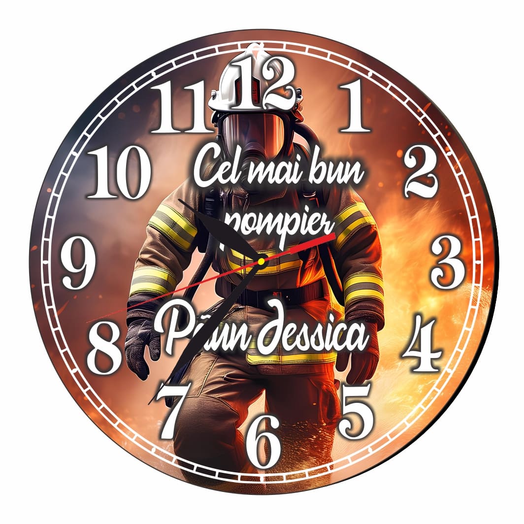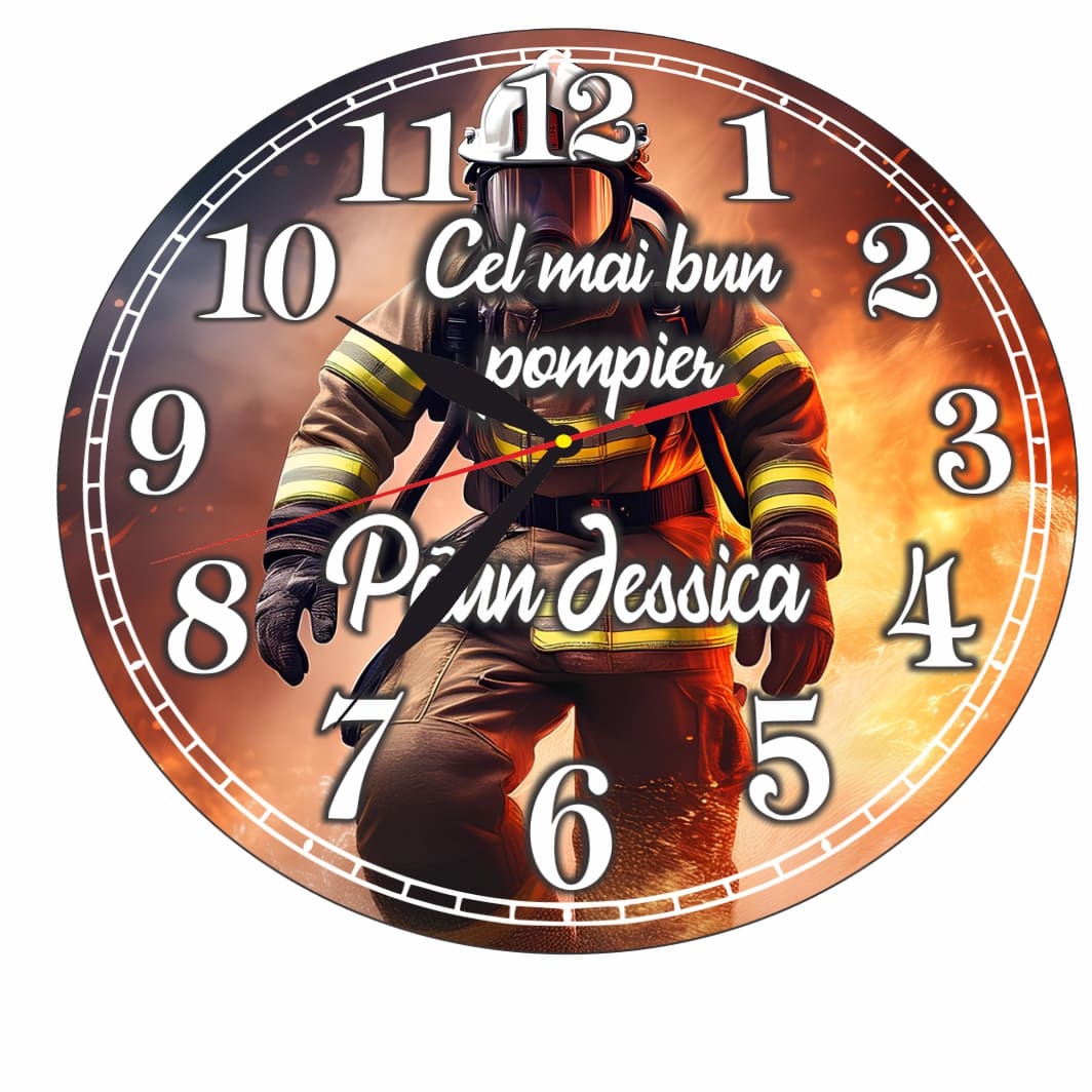 Ceas Pompier, Personalizat, Lemn, 40 cm, CMSUV119