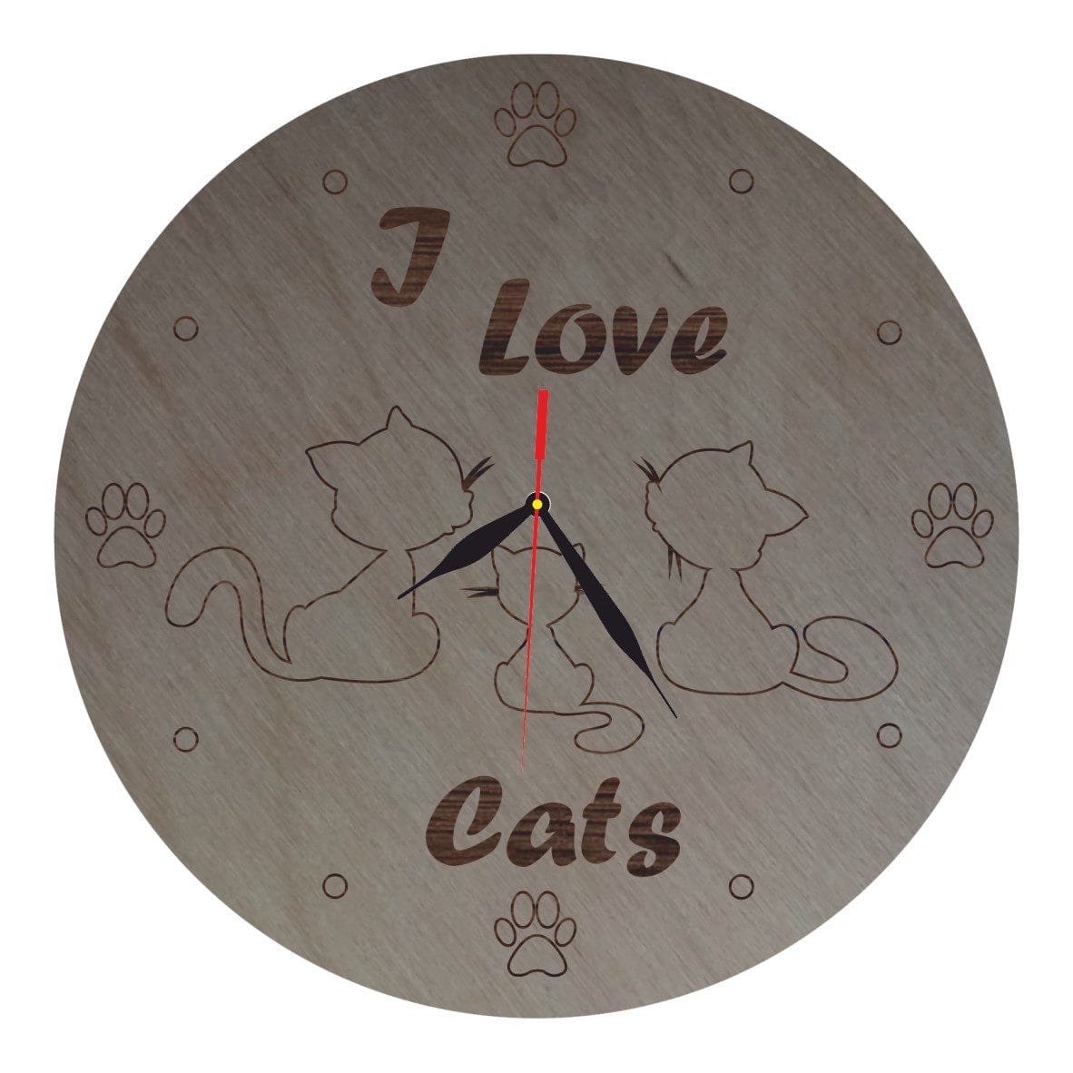 Ceas I Love Cats, Lemn, 40 cm, CU024