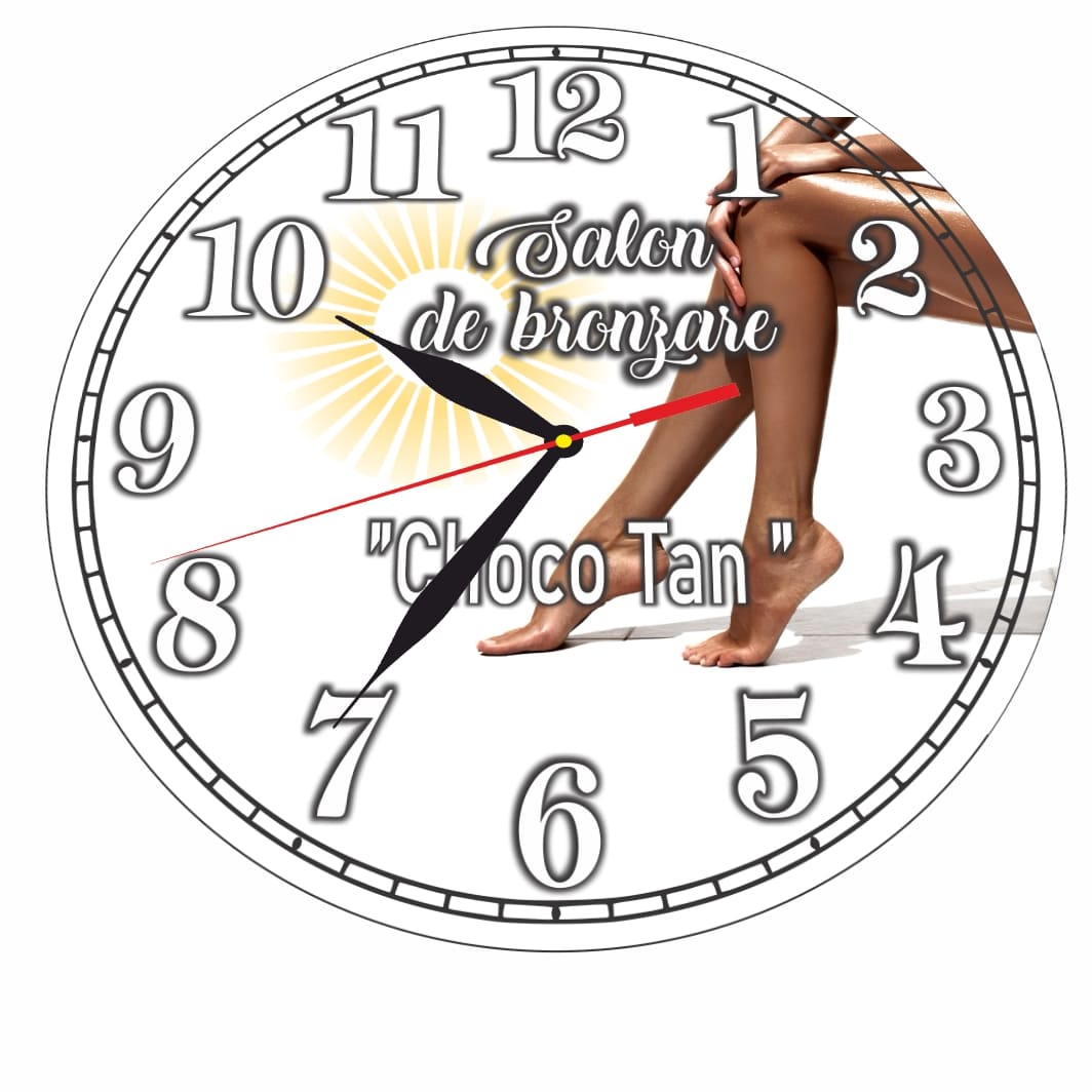 Ceas Salon Bronzare, Solar, Personalizat, Lemn, 40 cm, CMSUV079