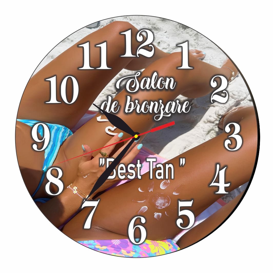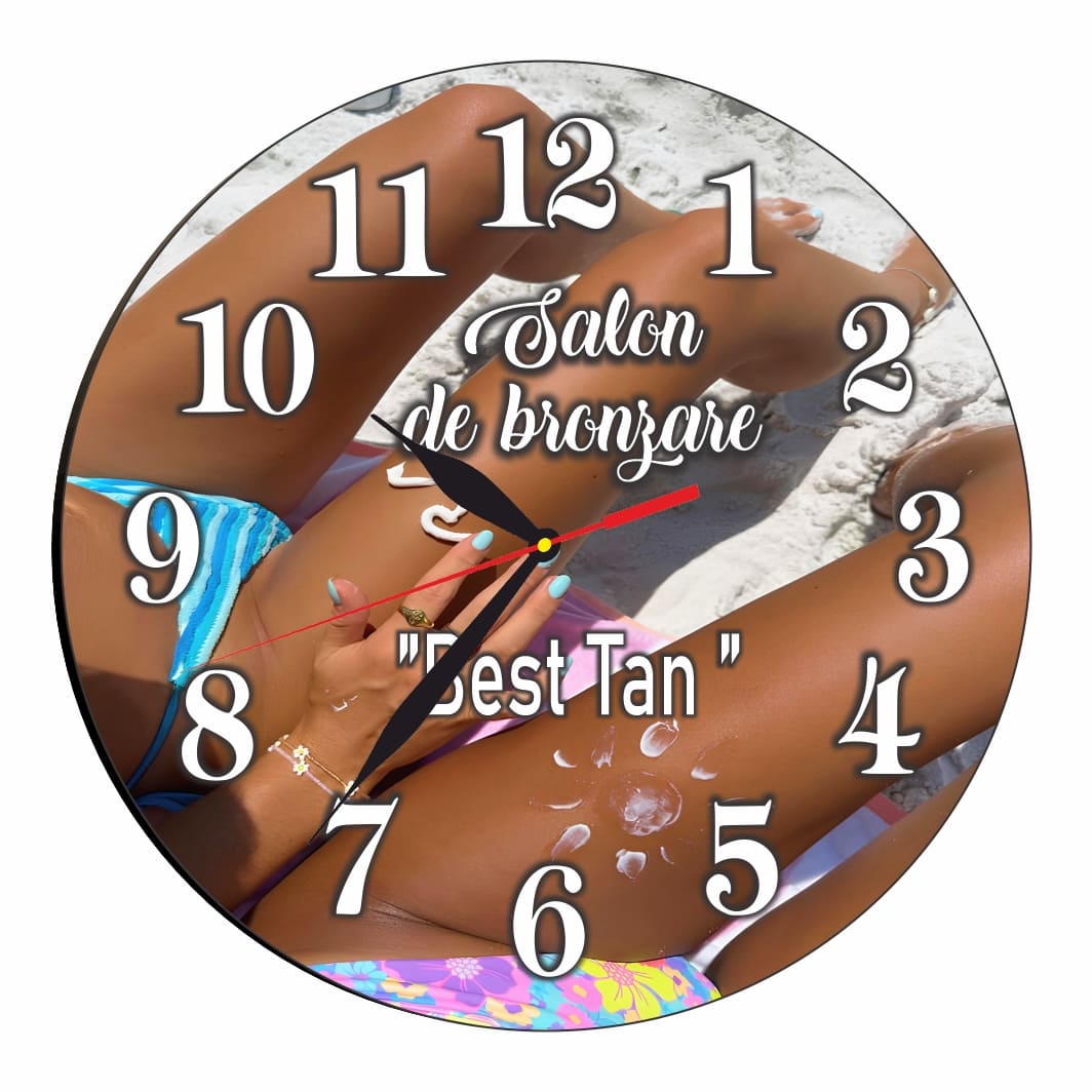 Ceas Salon Bronzare, Solar, Personalizat, Lemn, 40 cm, CMSUV080