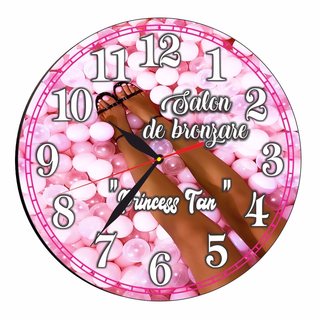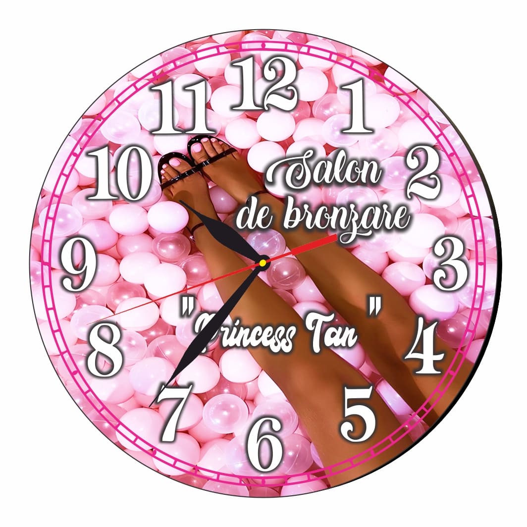 Ceas Salon Bronzare, Solar, Personalizat, Lemn, 40 cm, CMSUV081