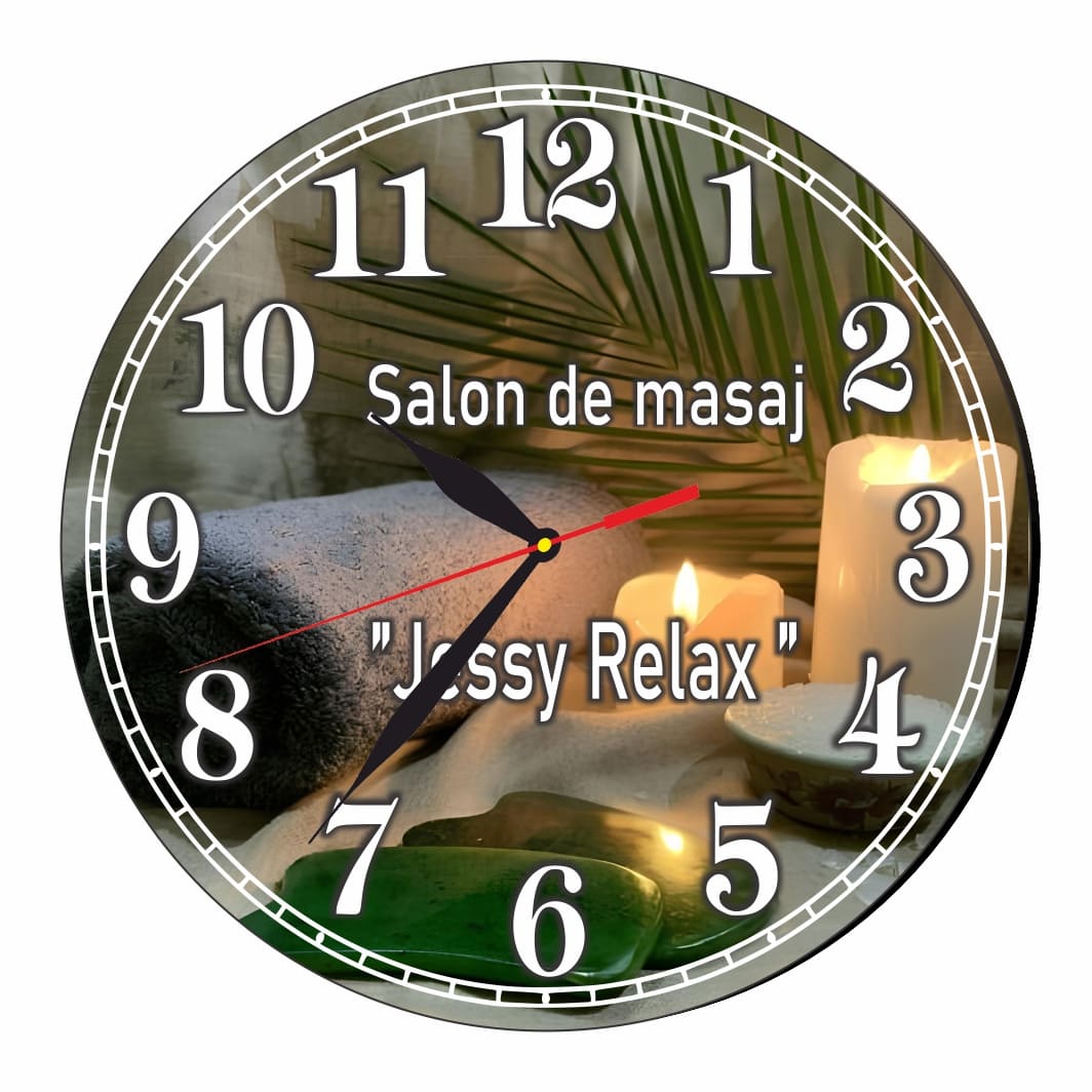Ceas Salon de masaj, Personalizat, Lemn, 40 cm, CMSUV102