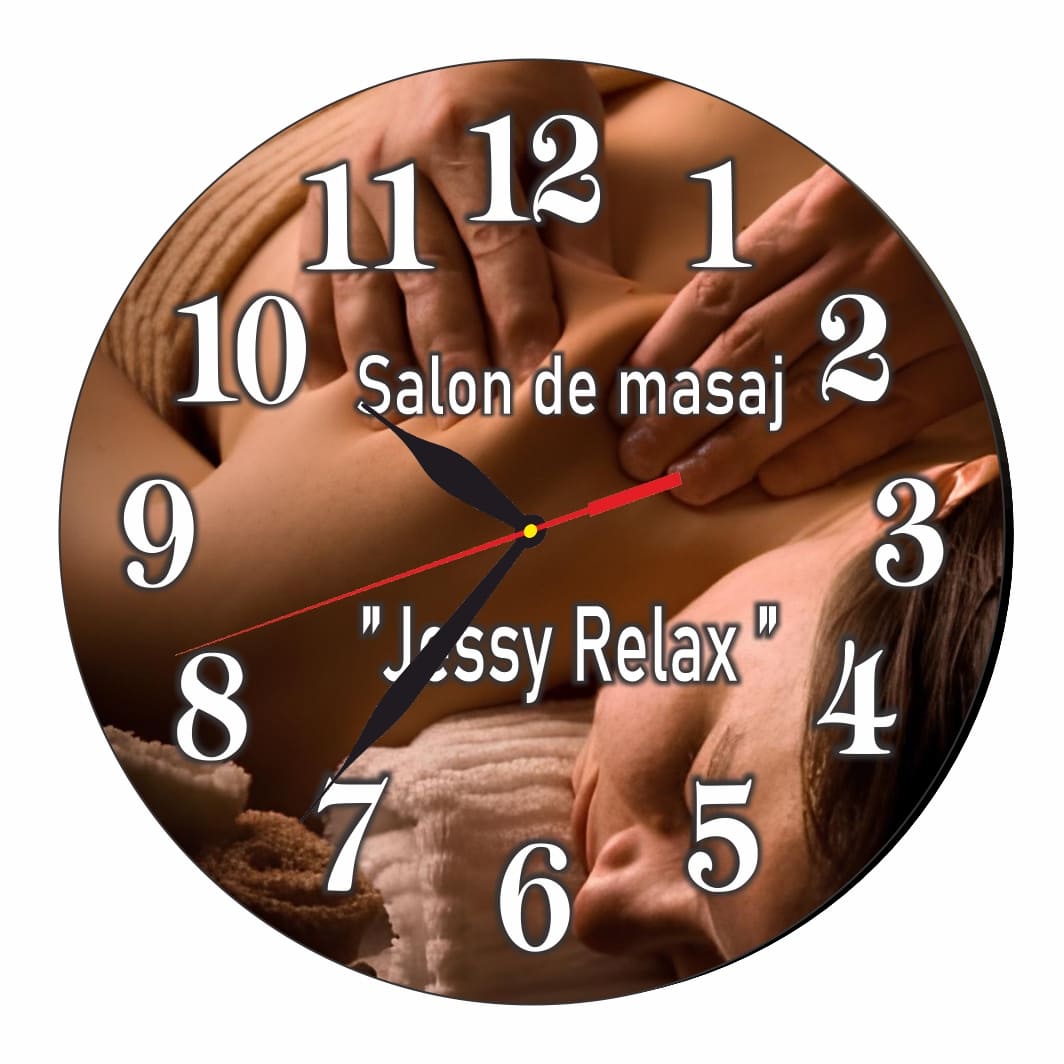 Ceas Salon de masaj, Personalizat, Lemn, 40 cm, CMSUV103