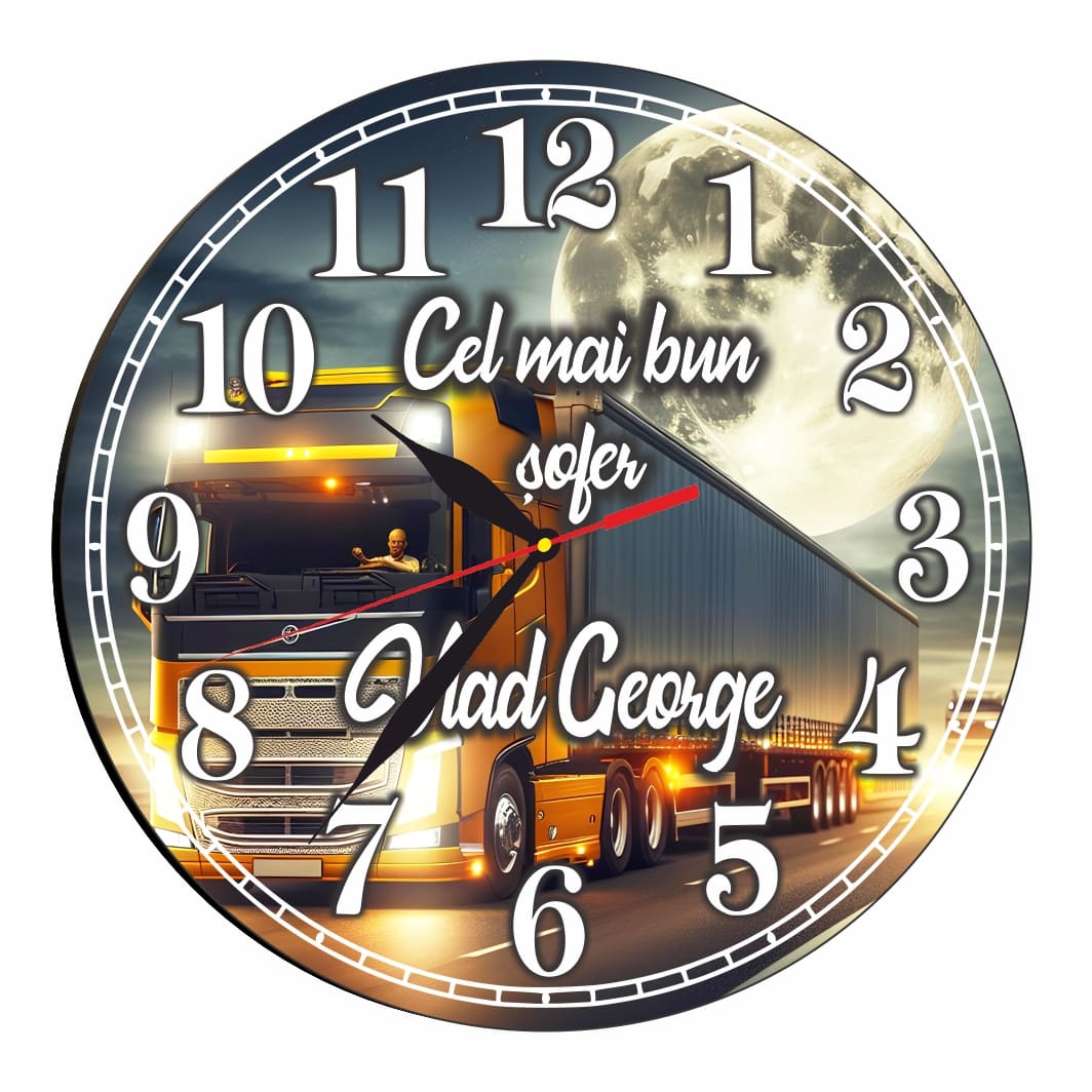 Ceas Sofer, Tirist, Personalizat, Lemn, 40 cm, CMSUV114