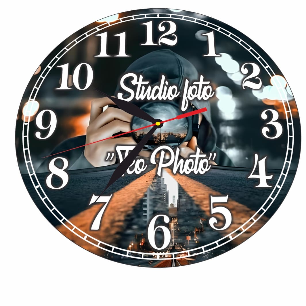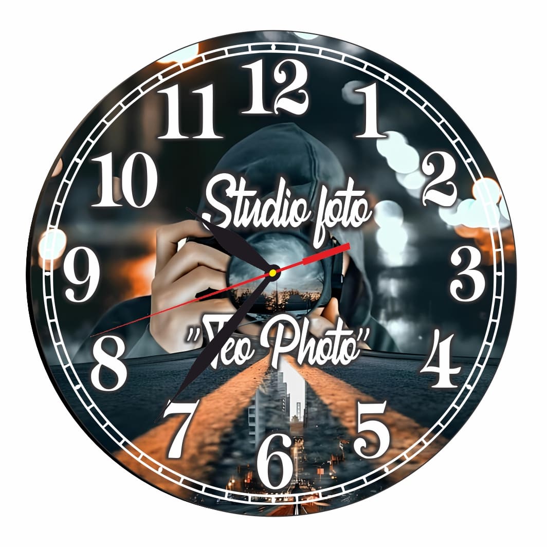 Ceas Studio foto, Fotograf, Personalizat, Lemn, 40 cm, CMSUV142