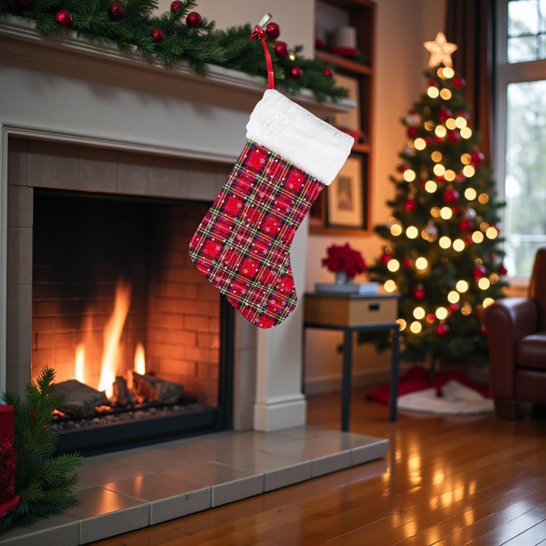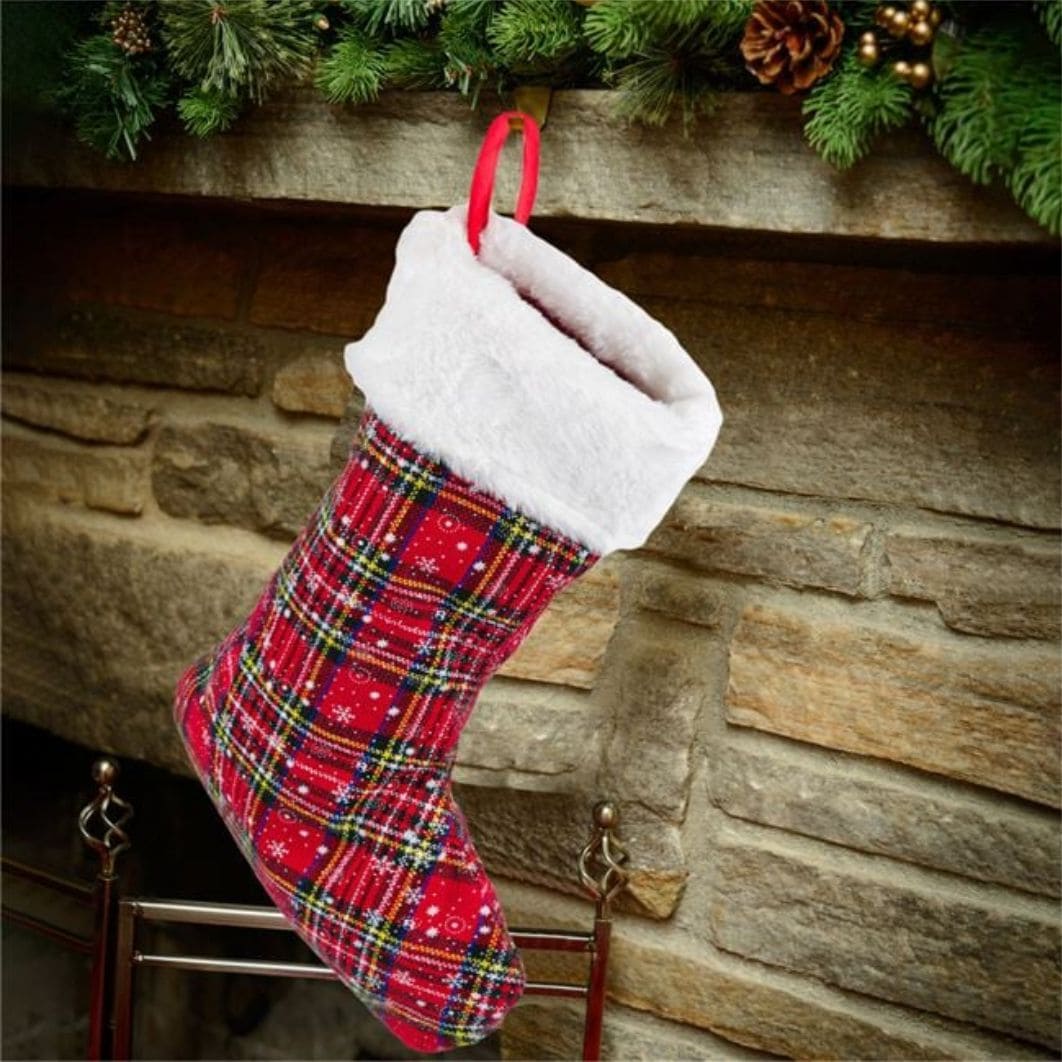 Ciorap Crăciun – Cizmă Crăciun Carouri Rosii, 45 cm