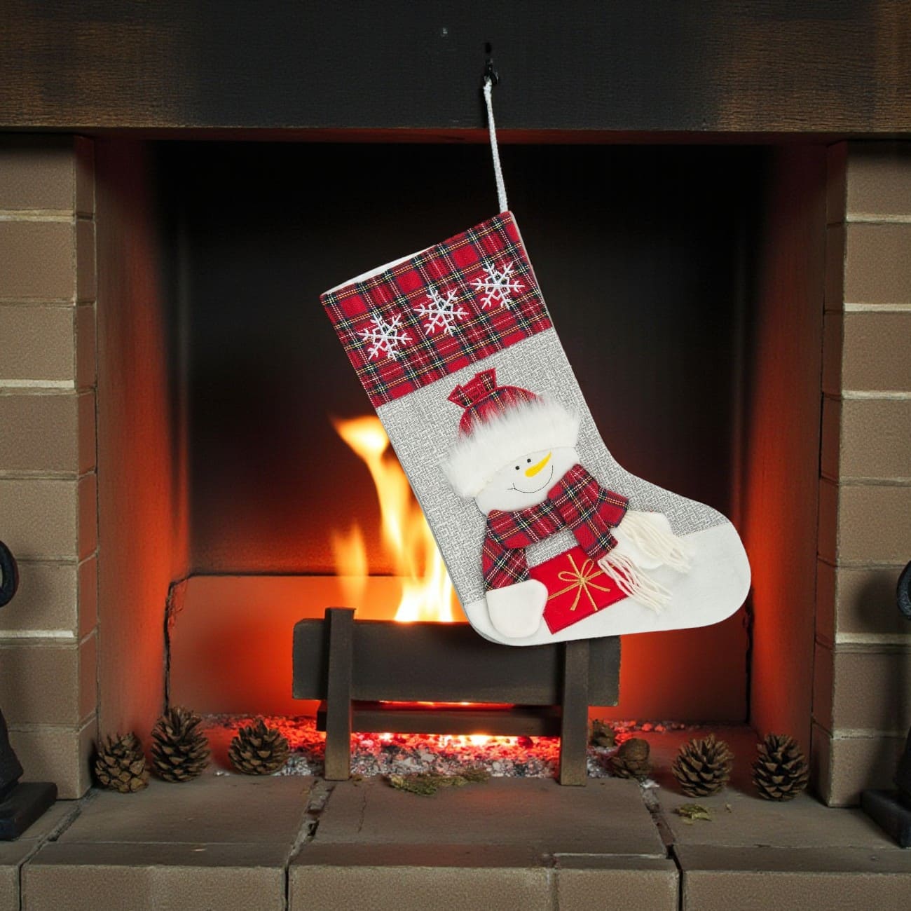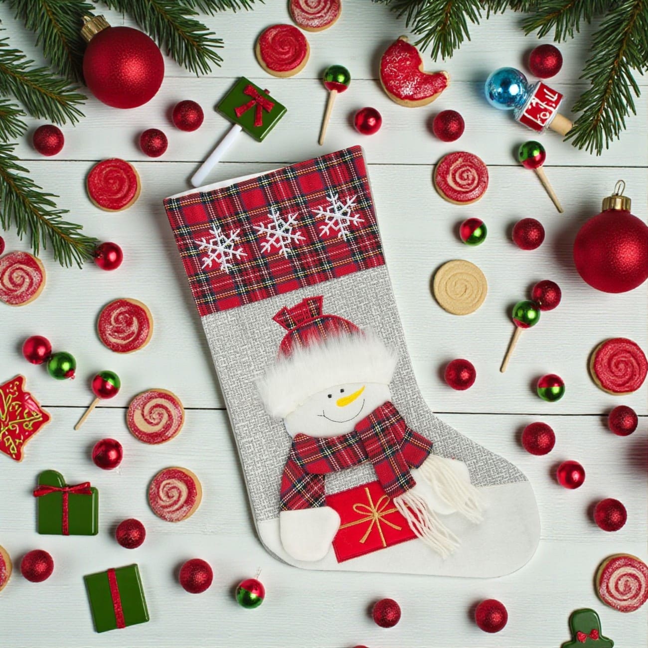 Ciorap Crăciun – Cizmă Crăciun Om Zapada, Carouri, 45 cm
