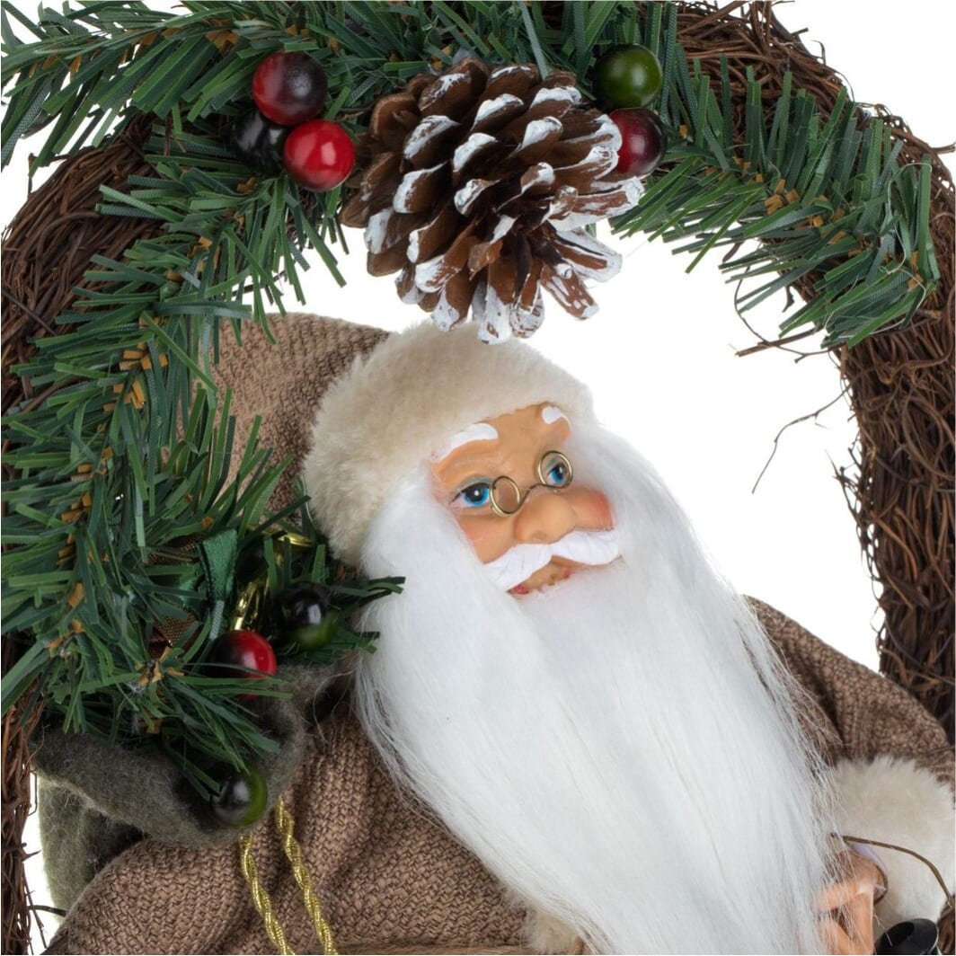 Coronita Craciun – Model Mos Craciun cu Felinar, Maro, 30cm (DCJ570)