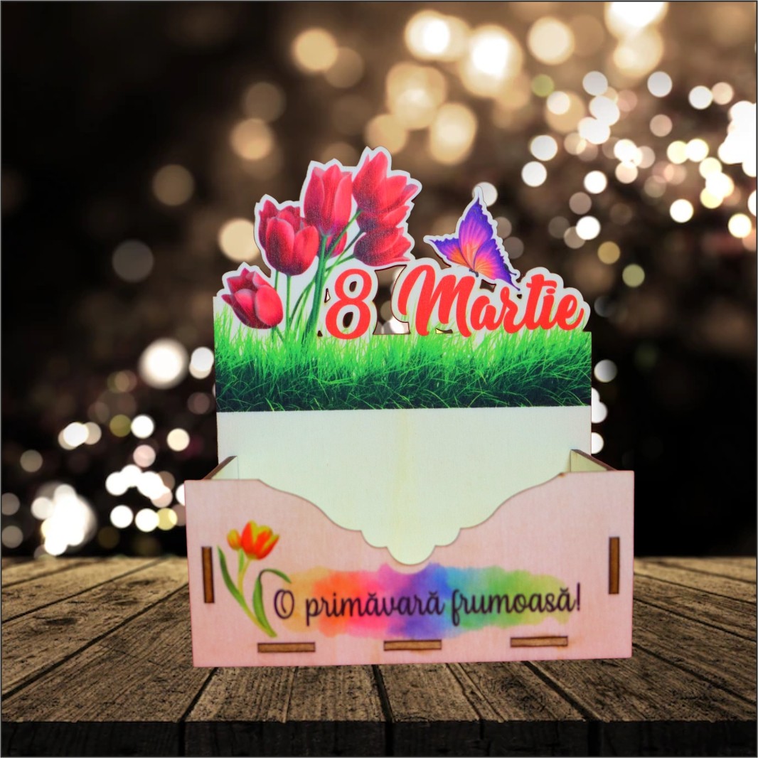 Martisor in Cutie, Trandafir de Sapun, Licheni, O primavara frumoasa, 10x10x5 cm, Rosu, CMUV009