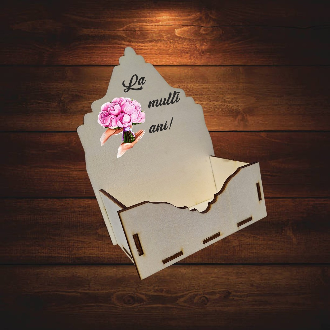 Cutie Aranjamente Florale, Lemn, La multi ani, CAUV018 Interval de prețuri: 14,99 lei până la 24,99 lei