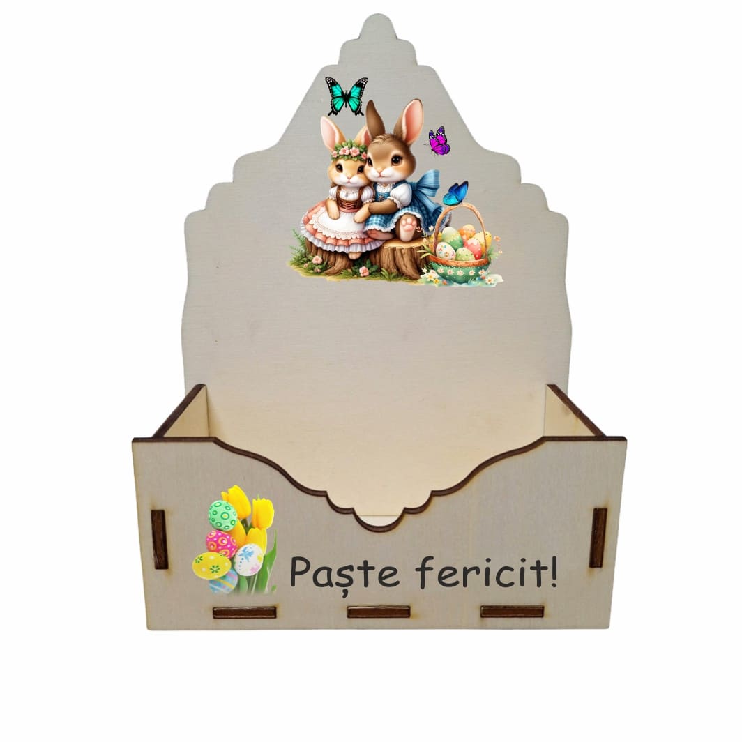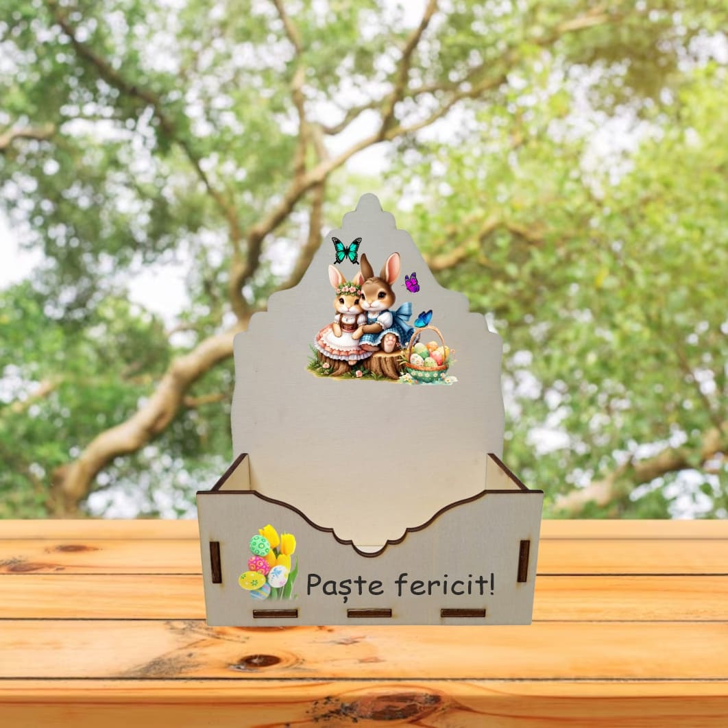 Această cutie aranjamente florale din lemn este un suport practic și estetic, creat special pentru realizarea unor decoruri florale elegante cu tematică de Paște. Concepută pentru a oferi stabilitate și un aspect natural aranjamentelor, cutia este ideală atât pentru florării și ateliere handmade, cât și pentru persoanele care doresc să creeze decoruri florale personalizate acasă. Lemnul conferă un aspect cald și autentic, punând în valoare frumusețea florilor și a elementelor decorative alese.