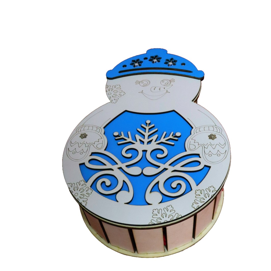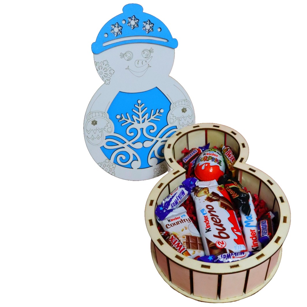 Cutie cadou de Craciun, Om de zapada, Pachet de dulciuri pentru copii, Lemn, Albastra, 27×19 cm, CCD003