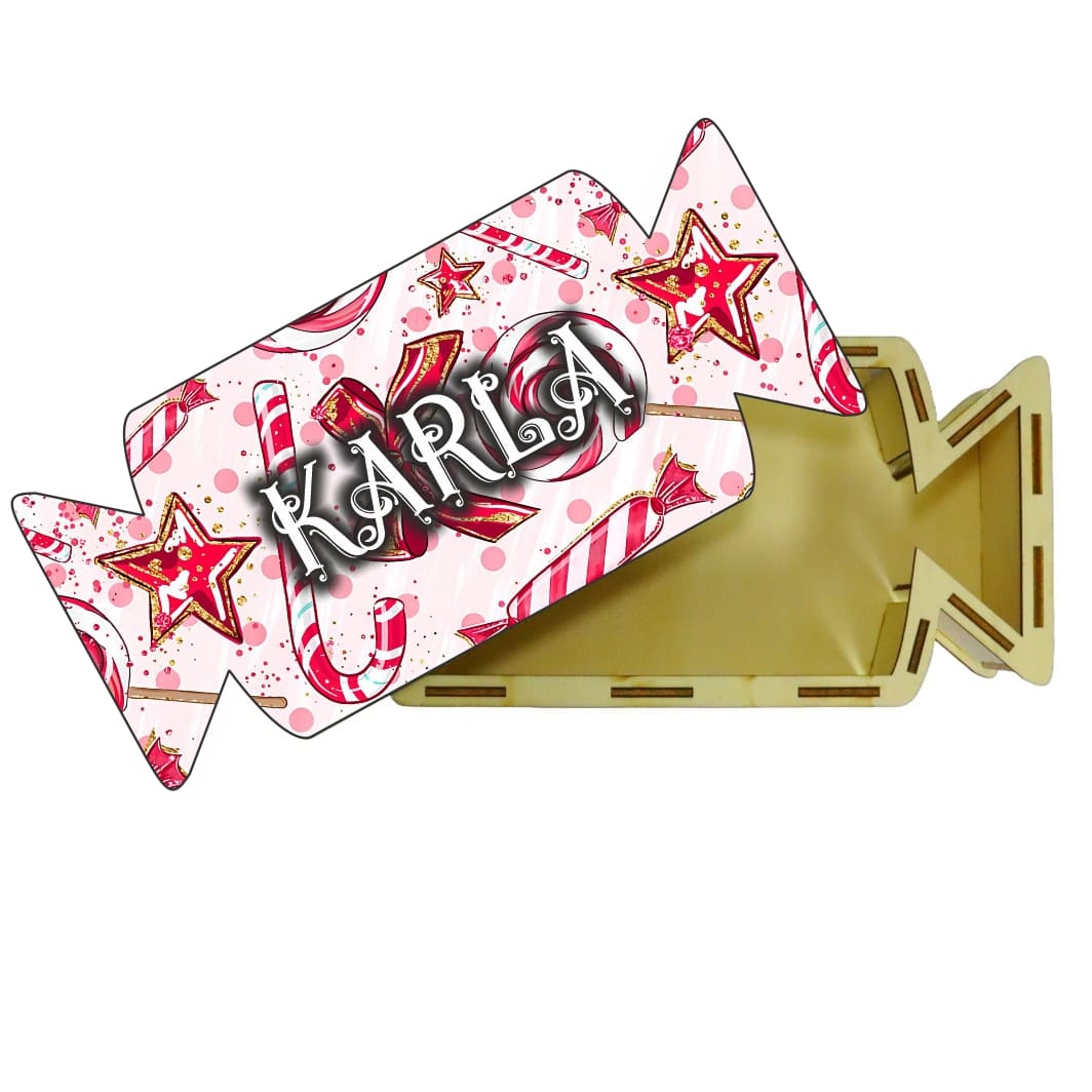 Ofera-i copilului tau de Craciun o cutie in forma de bomboana speciala cu numele lui, pe care o porti incarca cu dulciurile preferate ale celui mic.