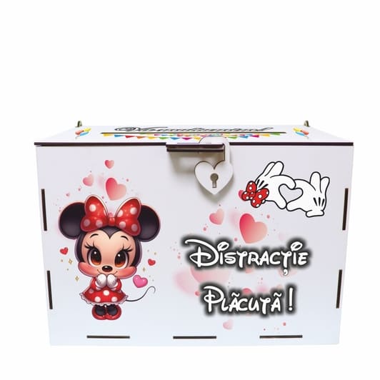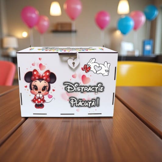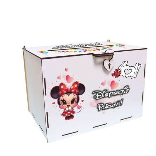 Modelul Minnie Mouse îmbină designul jucăuș cu un finisaj premium, astfel încât masa de dar să arate impecabil. Dimensiunile de 30x20x20 cm oferă spațiu pentru