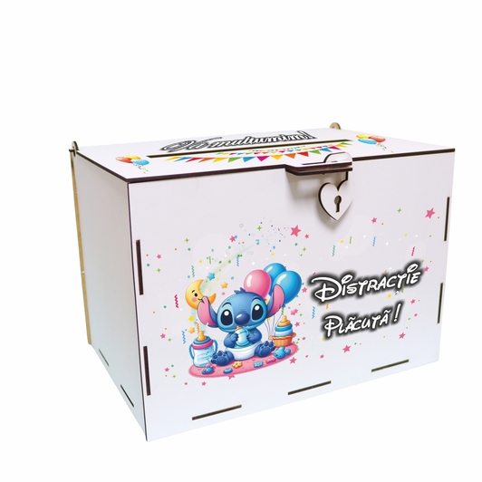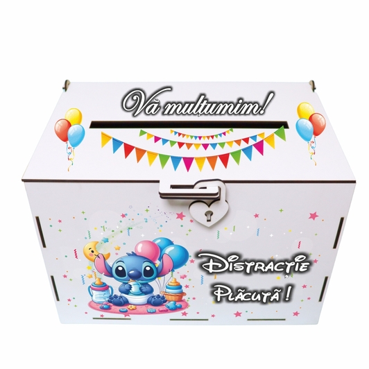 Cutie de bani pentru botez, Multicolora, Stitch, Lemn, 30x20x20 cm, CDBUV014 Prețul inițial a fost: 120,00 lei.Prețul curent este: 101,60 lei.