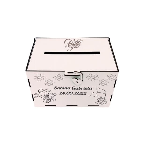 Fii primul care scrii o recenzie pentru „Cutie de bani pentru botez, Porcusorul Piglet, Lemn, 30x20x20 cm, Alb”