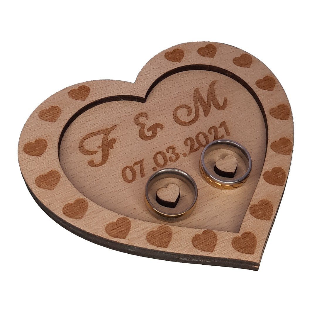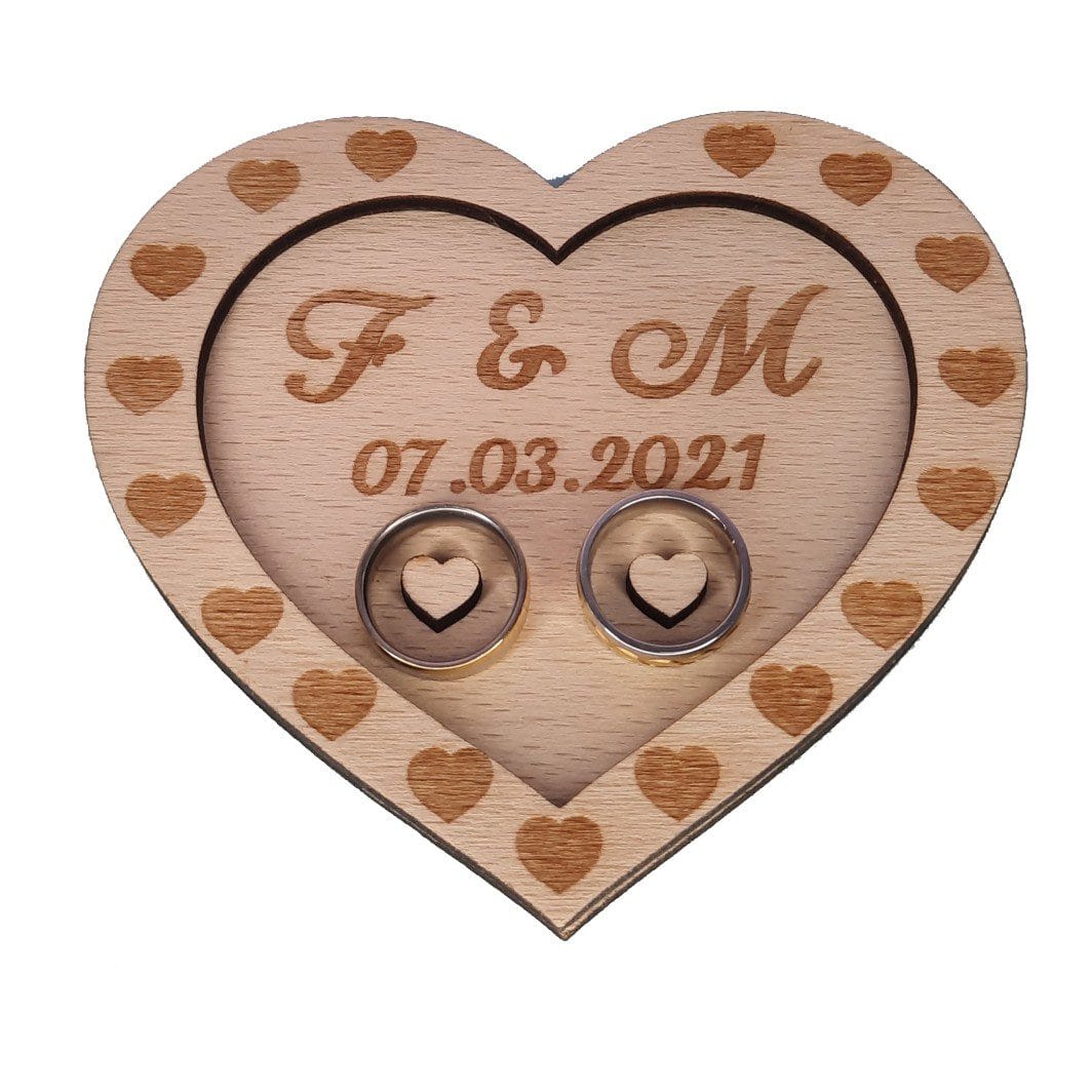 Cutie de verighete, Inima, Personalizata, Lemn Natur, CTV004