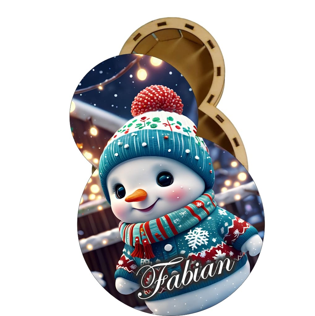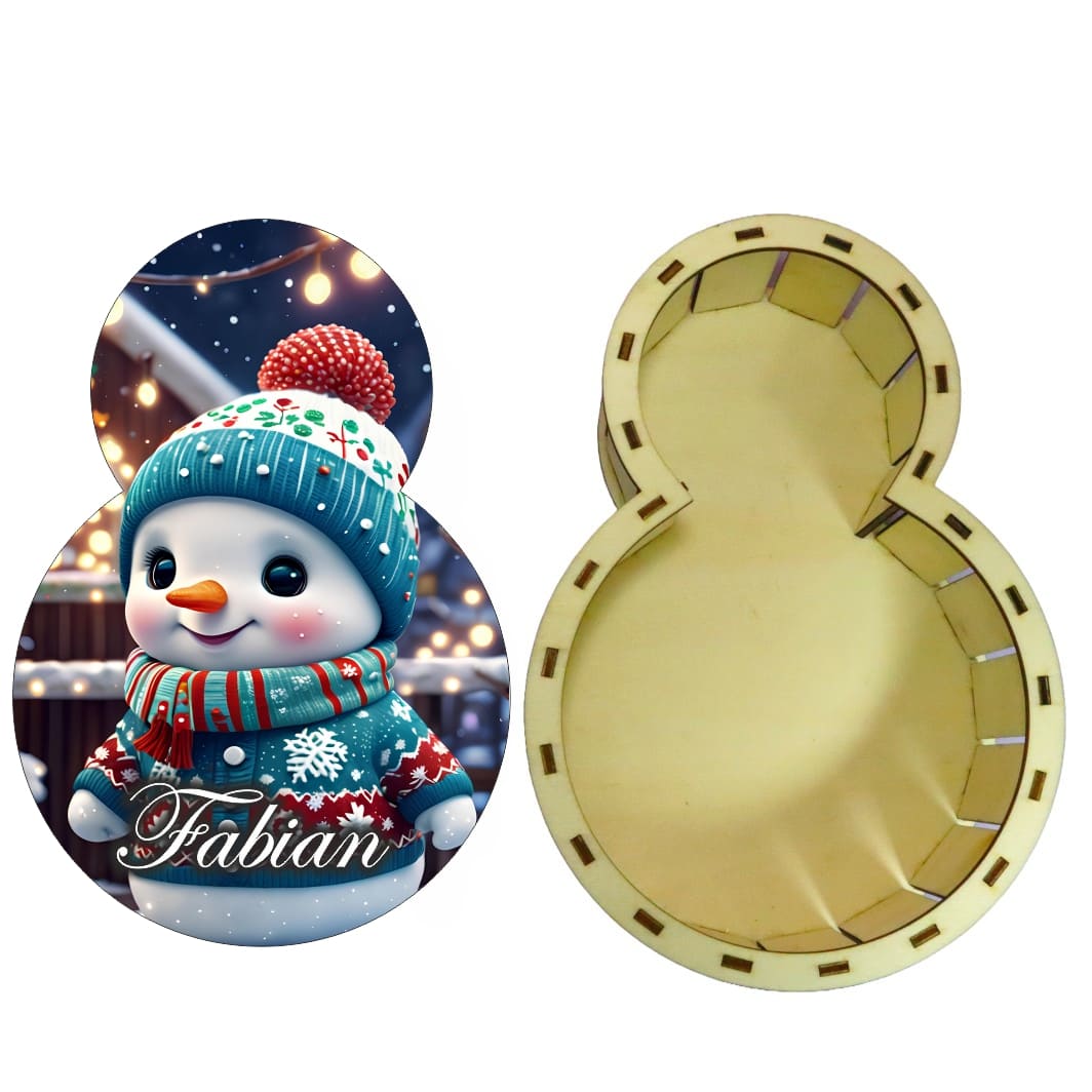 Cutia Dulciuri Crăciun, Personalizată, Om Zăpadă Festiv, Lemn, 27x19cm, CCDB022 este combinația perfectă dintre designul tradițional de Crăciun și eleganța modernă a lemnului personalizat. Este un cadou care aduce emoție, zâmbet și magie în fiecare casă.