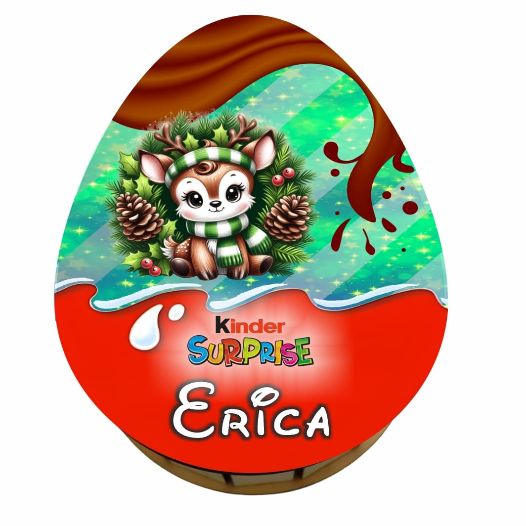 Cutie Dulciuri Craciun, Personalizata, Ou Kinder, Ren, Lemn, CCDB040 este un cadou perfect pentru sărbătorile de iarnă — vesel, colorat și plin de emoție. Realizată din lemn de plop, imprimată UV și personalizată cu numele copilului, această cutie aduce magia Crăciunului mai aproape de inimile celor mici.