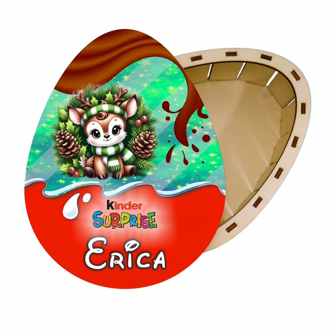 Cutie Dulciuri Craciun, Personalizata, Ou Kinder, Ren, Lemn, CCDB040