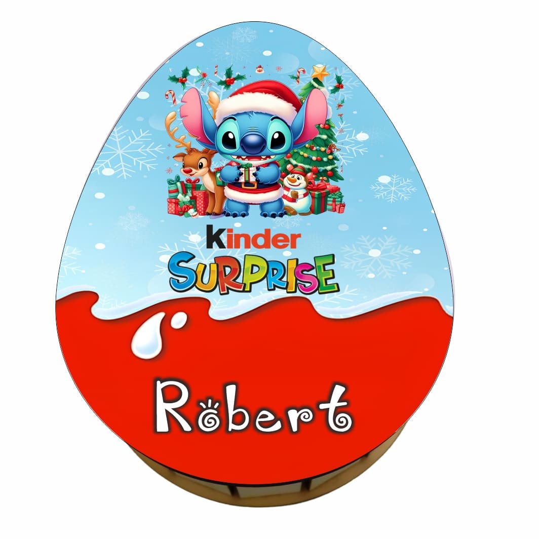 Cutie Dulciuri Craciun, Personalizata, Ou Kinder, Stitch, Lemn, CCDB039
