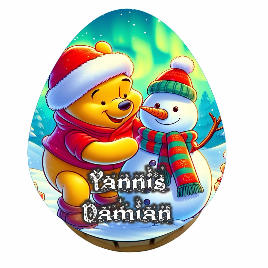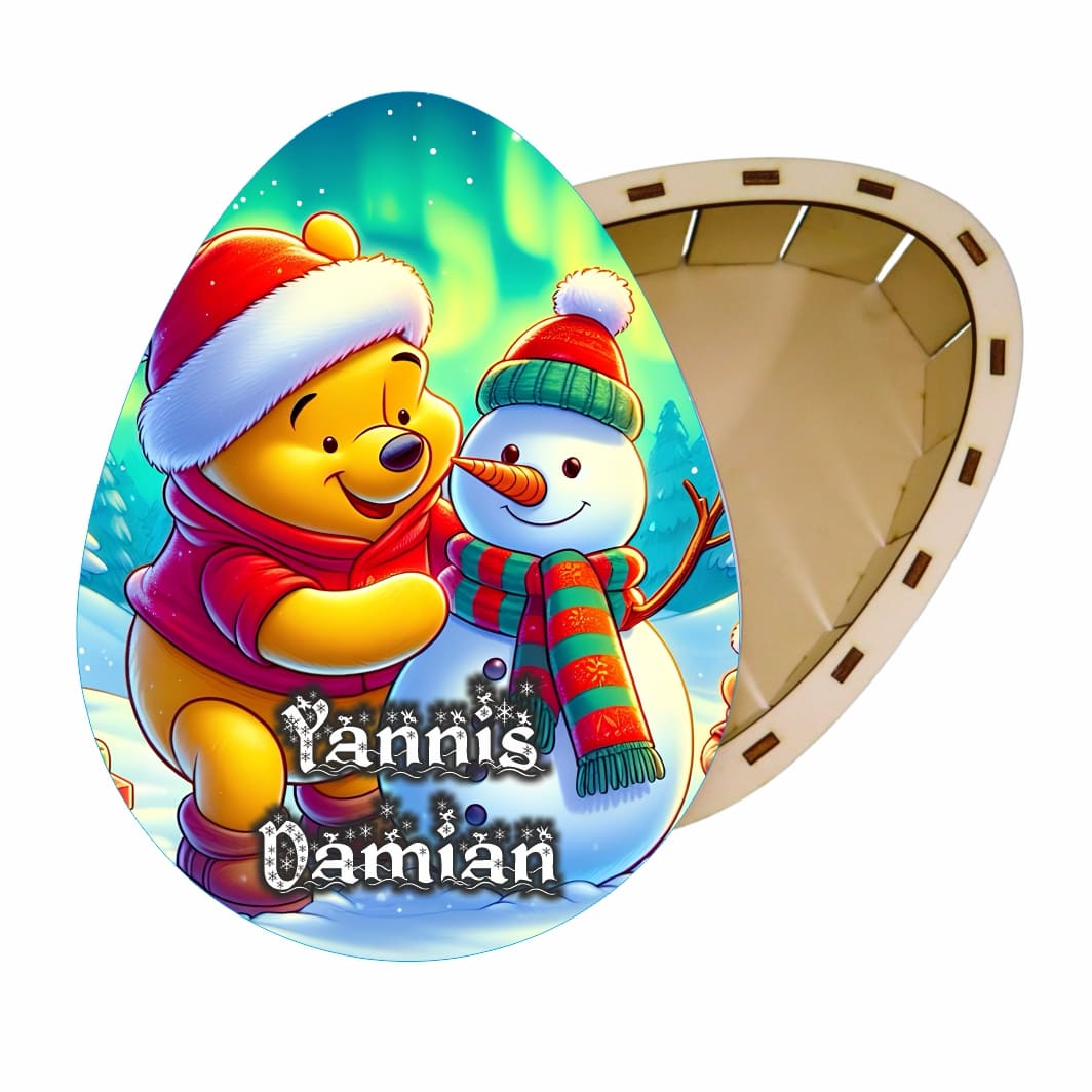Cutie Dulciuri Craciun, Personalizata, Ou Kinder, Winnie, Lemn, CCDB042