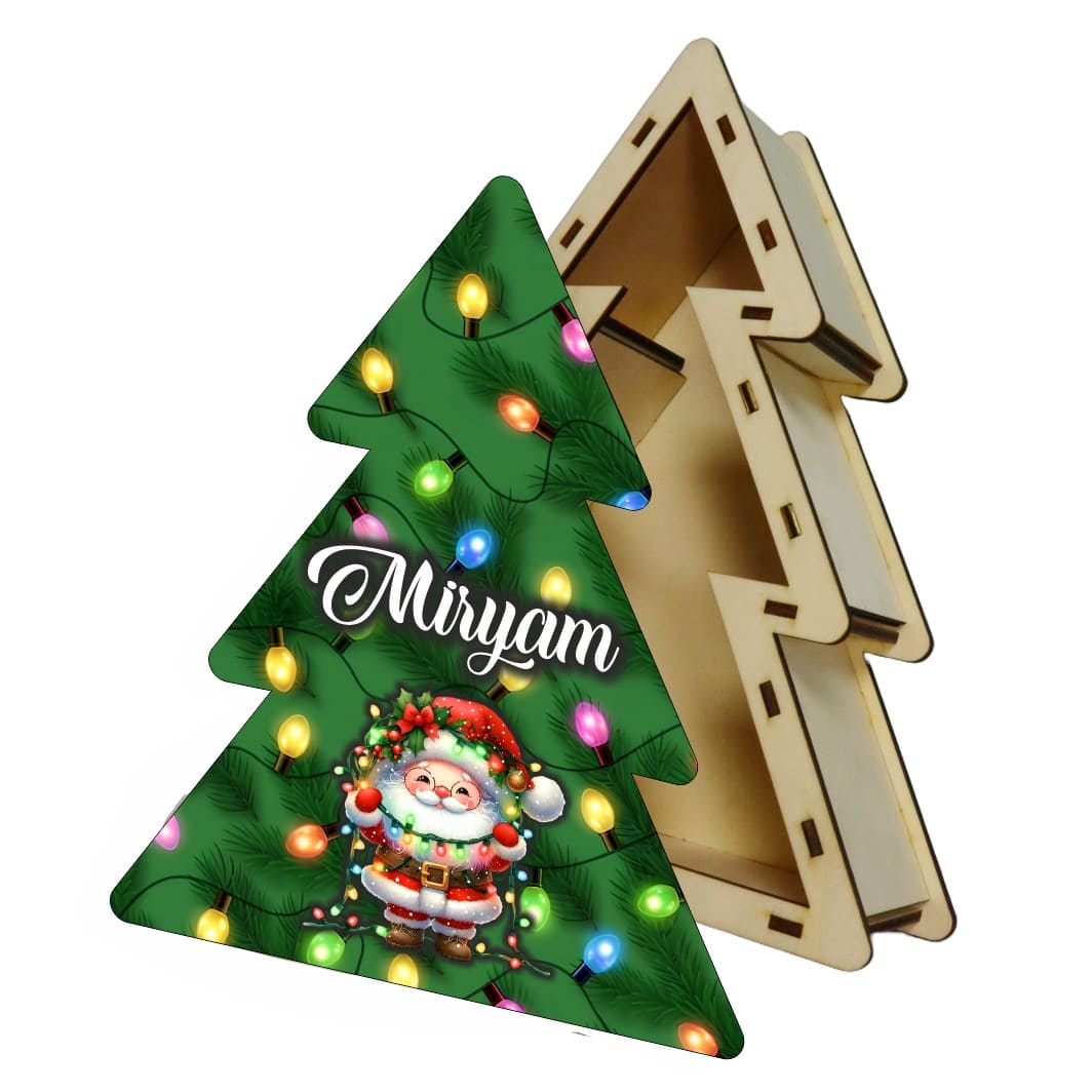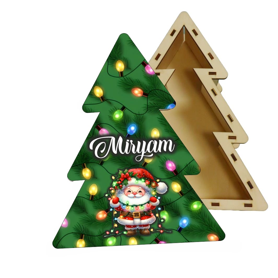 Cutie Dulciuri Crăciun, Personalizată, Brad, Moș, Lemn, 27x22cm, CCDB011