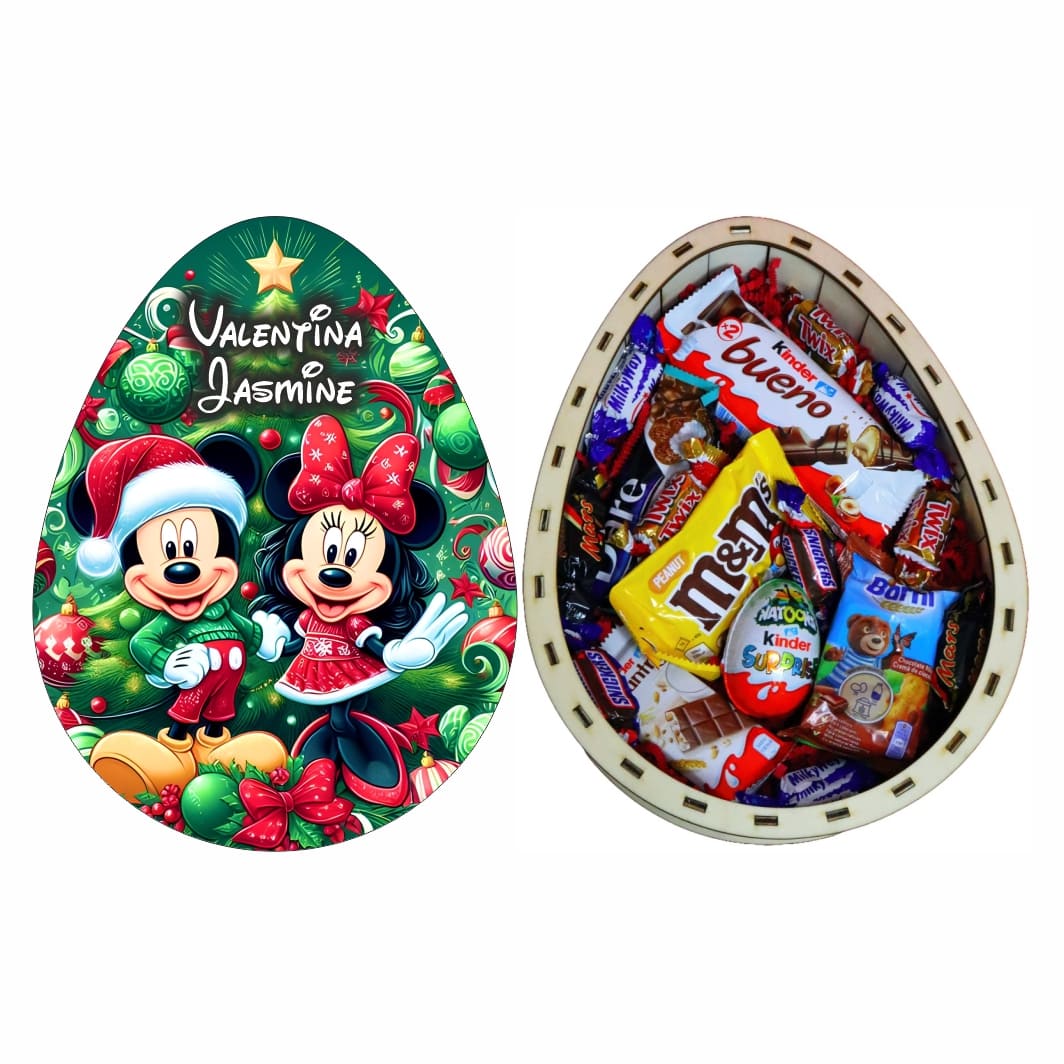Această cutie dulciuri Crăciun personalizată în formă de Ou Kinder, Disney este alegerea perfectă pentru cei care doresc să dăruiască un cadou special, elegant și personal.