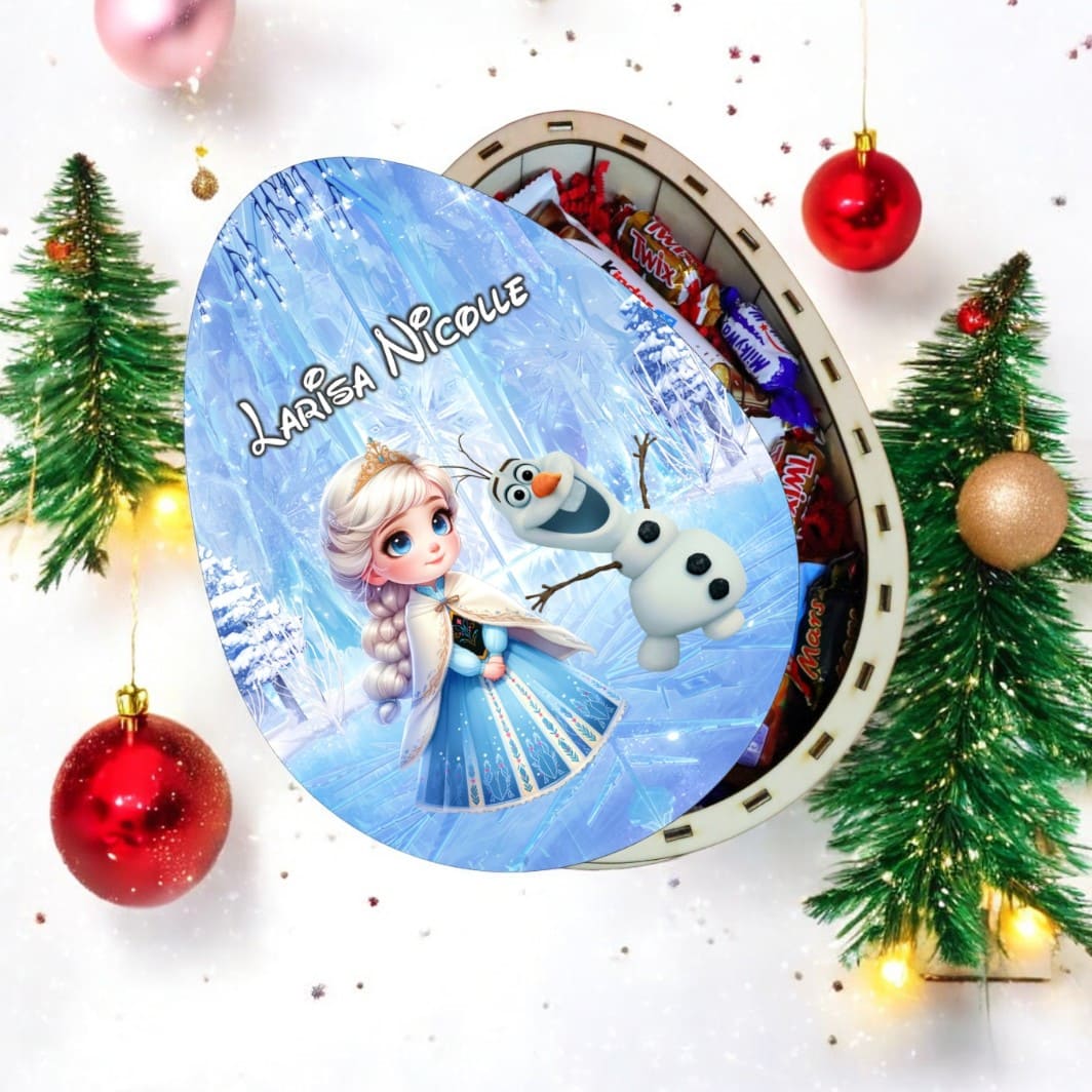 Cutie Dulciuri Craciun, Personalizata, Ou Kinder, Elsa, Lemn, 30cm, CCD029
