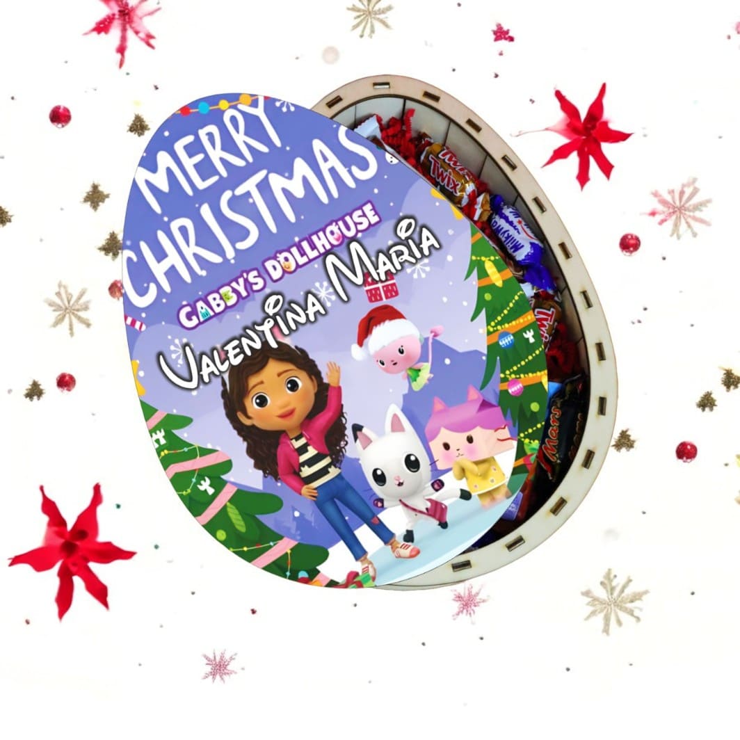 Cutie Dulciuri Craciun, Personalizata, Ou Kinder, Gabby, Lemn, 30cm, CCD030