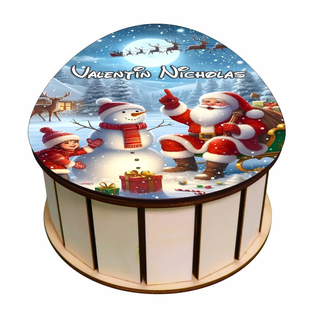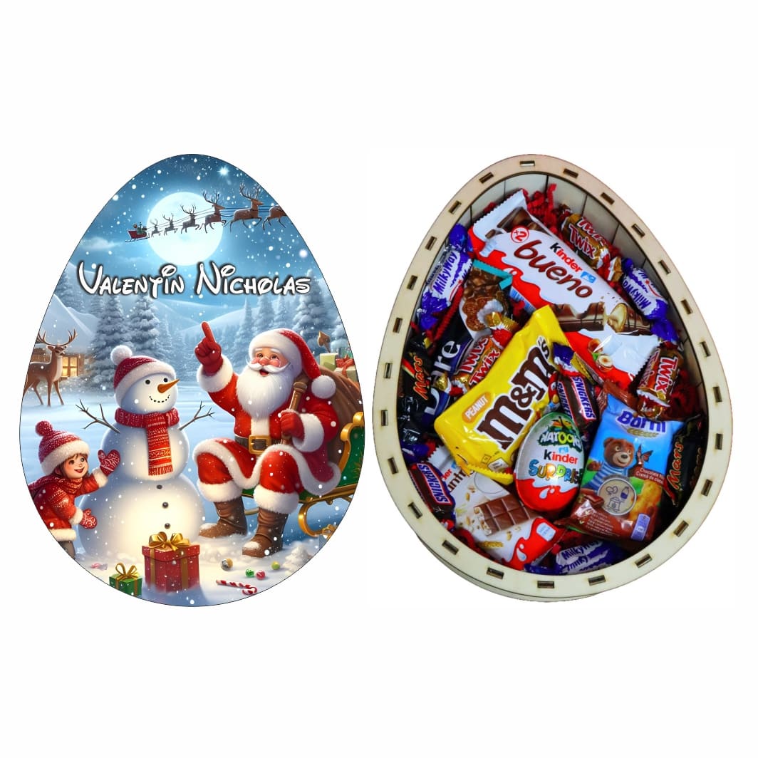 Cutie Dulciuri Craciun, Personalizata, Ou Kinder, Mos, Iarna, Lemn, 30cm, CCD036