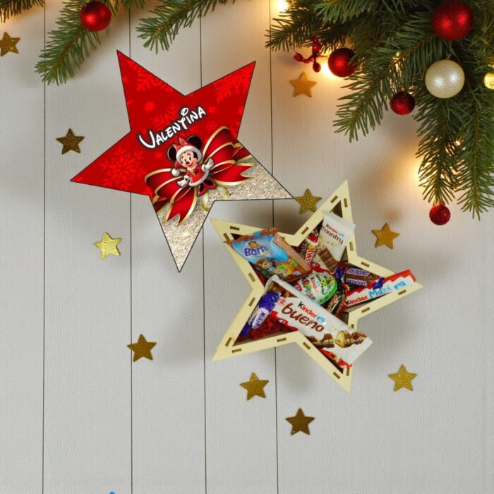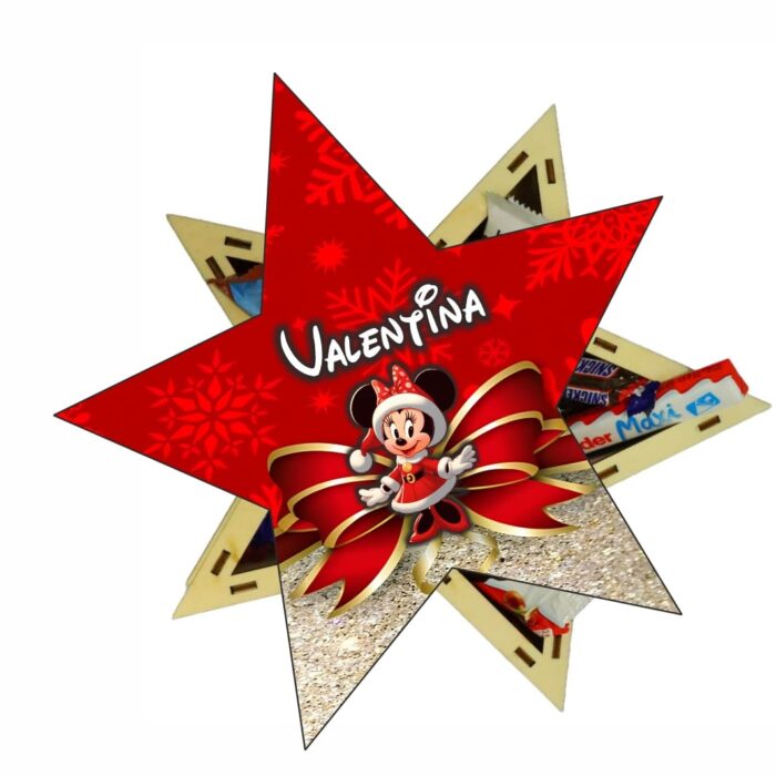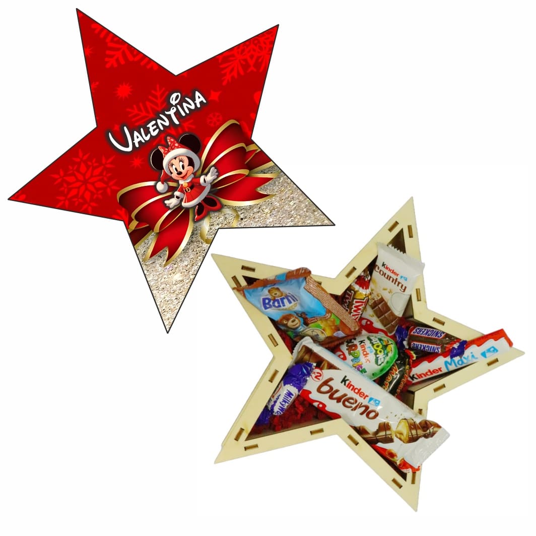 Cutie Dulciuri Craciun, Personalizata, Stea, Minnie Mouse, Lemn, 29x29cm, CCD047 este alegerea ideală pentru cei care vor să ofere un dar plin de farmec, gust și emoție.