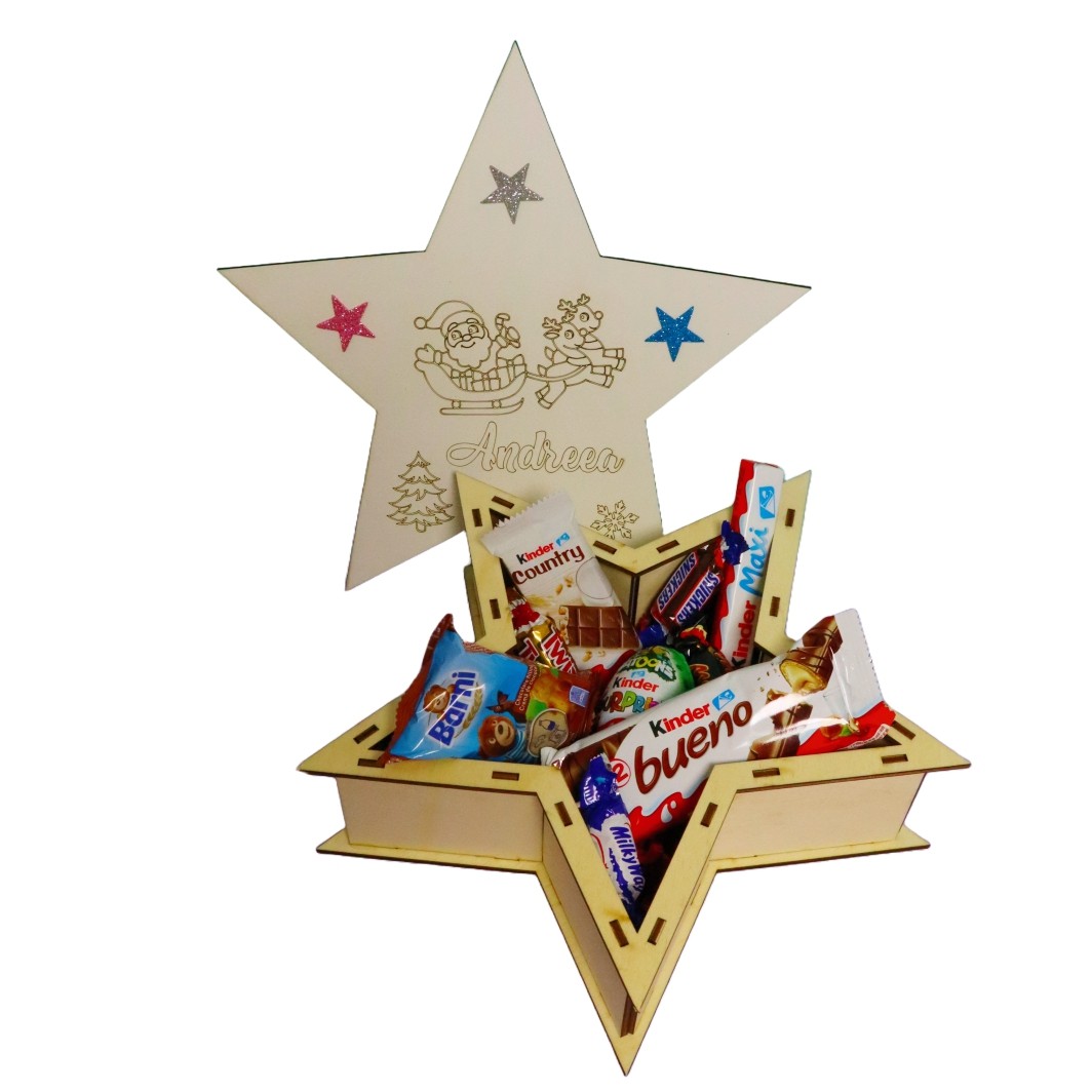 Cutie Dulciuri Craciun, Personalizata, Stea, Lemn, 29×29 cm, CCD007