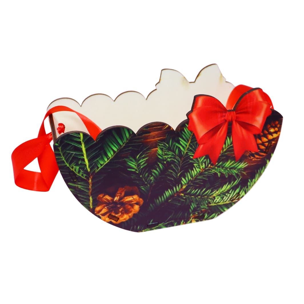 Cutie din lemn pentru aranjamentele florale cu motiv de Craciun.