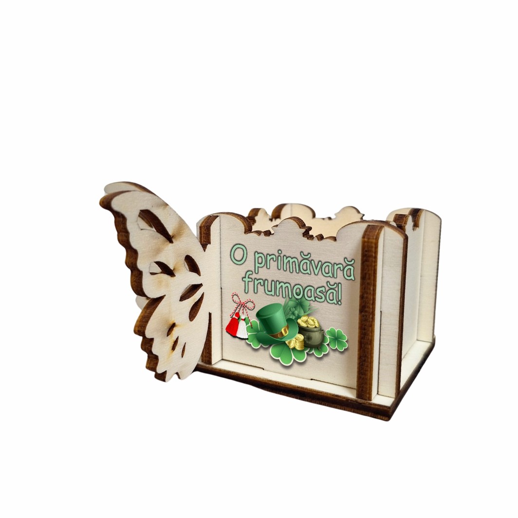 Cutie Mini Aranjamente Florale, Lemn, Fluture, 1 Martie, 10x10x5 cm, CAUV058