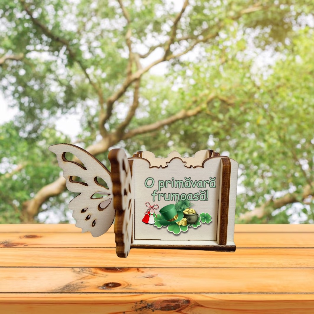 Cutie Mini Aranjamente Florale, Lemn, Fluture, 1 Martie, 10x10x5 cm, CAUV060 Prețul inițial a fost: 9,99 lei.Prețul curent este: 8,99 lei.