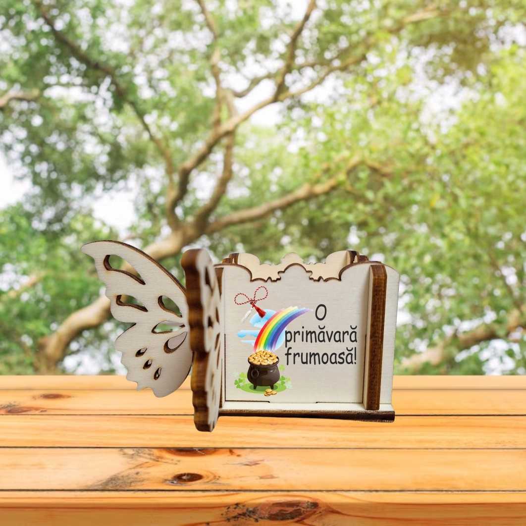 Cutie Mini Aranjamente Florale, Lemn, Fluture, 1 Martie, 10x10x5 cm, CAUV059 Prețul inițial a fost: 9,99 lei.Prețul curent este: 8,99 lei.