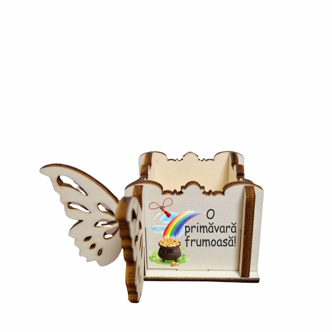Cutie Mini Aranjamente Florale, Lemn, Fluture, 1 Martie, 10x10x5 cm, CAUV060