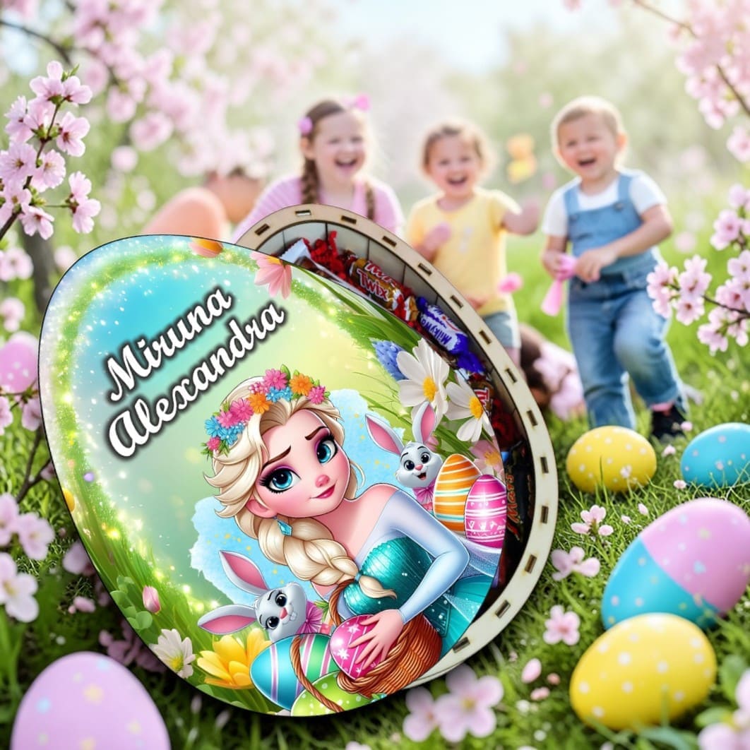 În căutarea cadoului perfect pentru sărbătoarea Paștelui? Această cutie dulciuri personalizata este soluția ideală pentru a aduce un zâmbet pe chipul celor mici. Realizată din lemn de calitate superioară și dotată cu un design vesel care va captiva imediat atenția copiilor. Personalizarea cu numele copilului face ca acest cadou să fie cu adevărat unic și special, perfect pentru a celebra magia acestei sărbători.