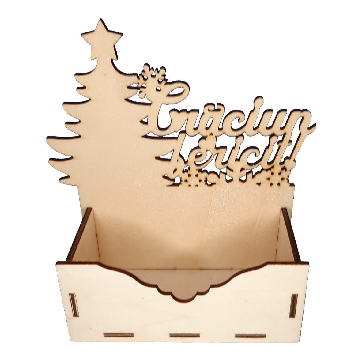 Cutie din lemn pentru aranjamentele florale cu motiv de Craciun.