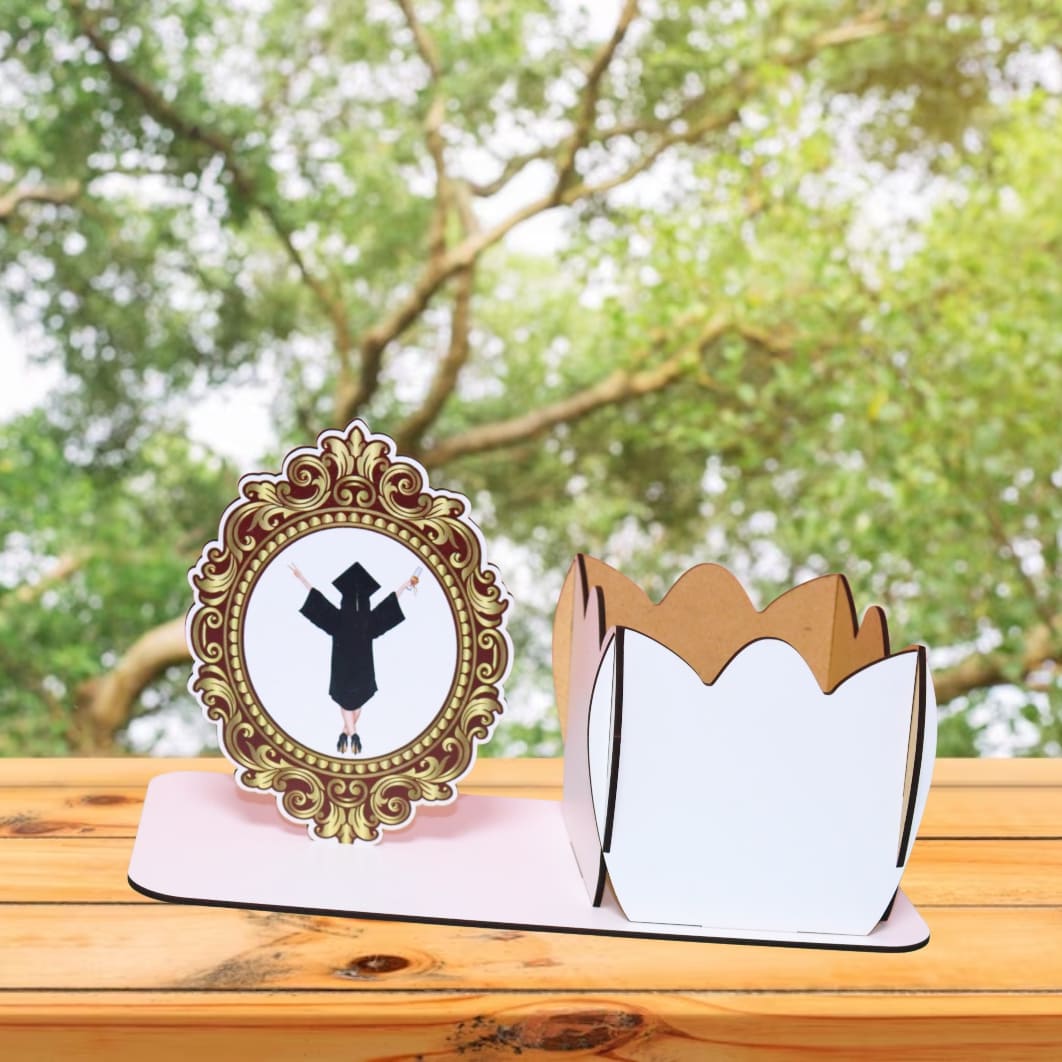 Decoratiune Absolvire, Tip Cutie Aranjament Floral, Lemn, 28x12cm, CABS002