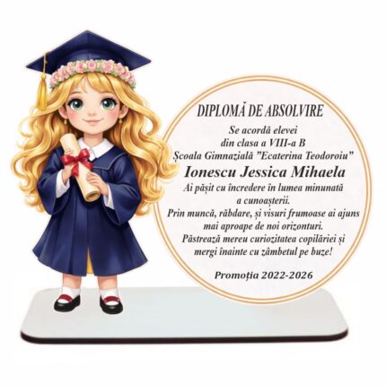 Fii primul care scrii o recenzie pentru „Decoratiune Absolvire, Personalizata, Tip Diploma, Lemn, 16x13cm, CABS021”