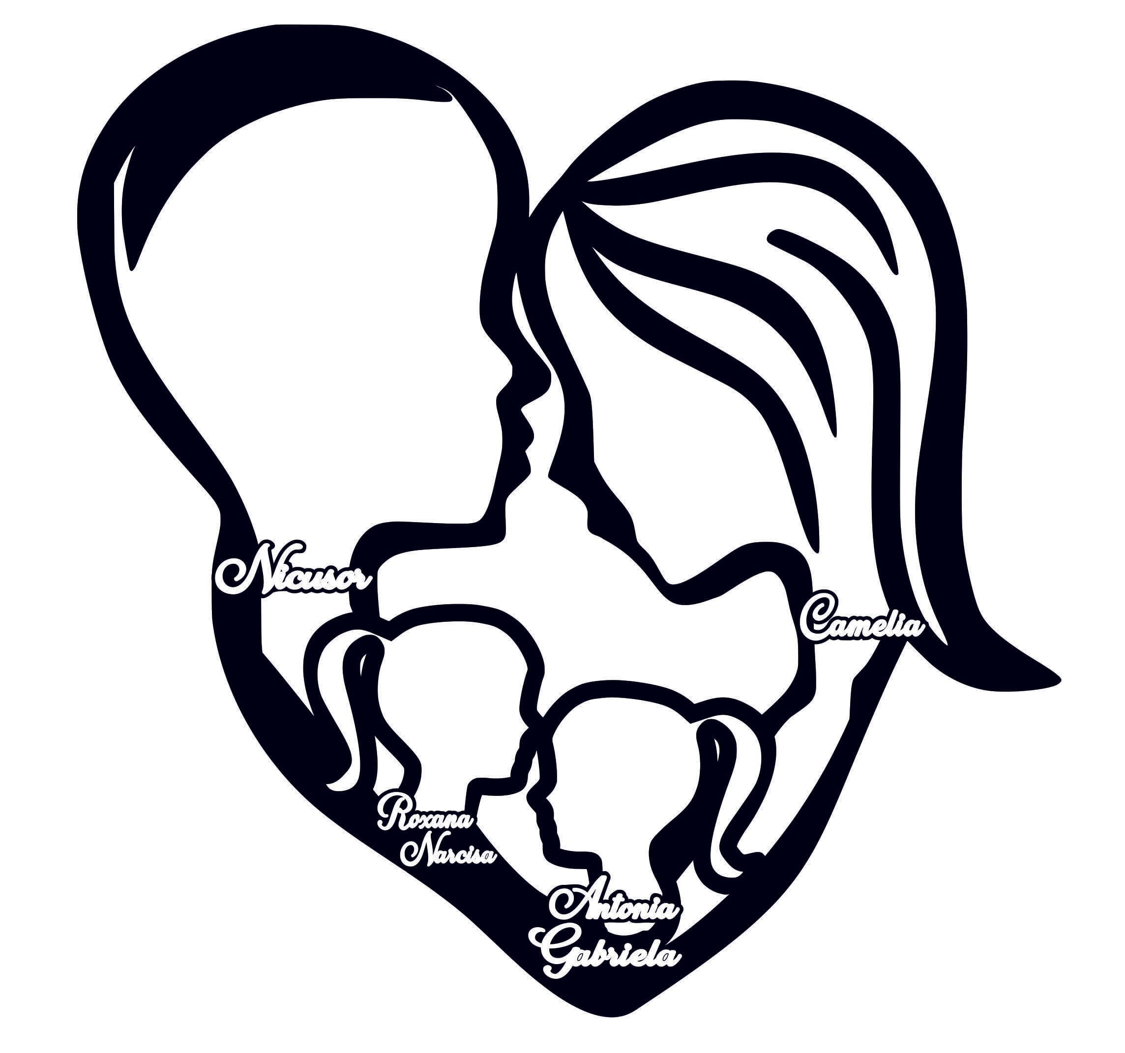 Decoratiune pentru familie personalizata cu numele sotilor si al copiilor.