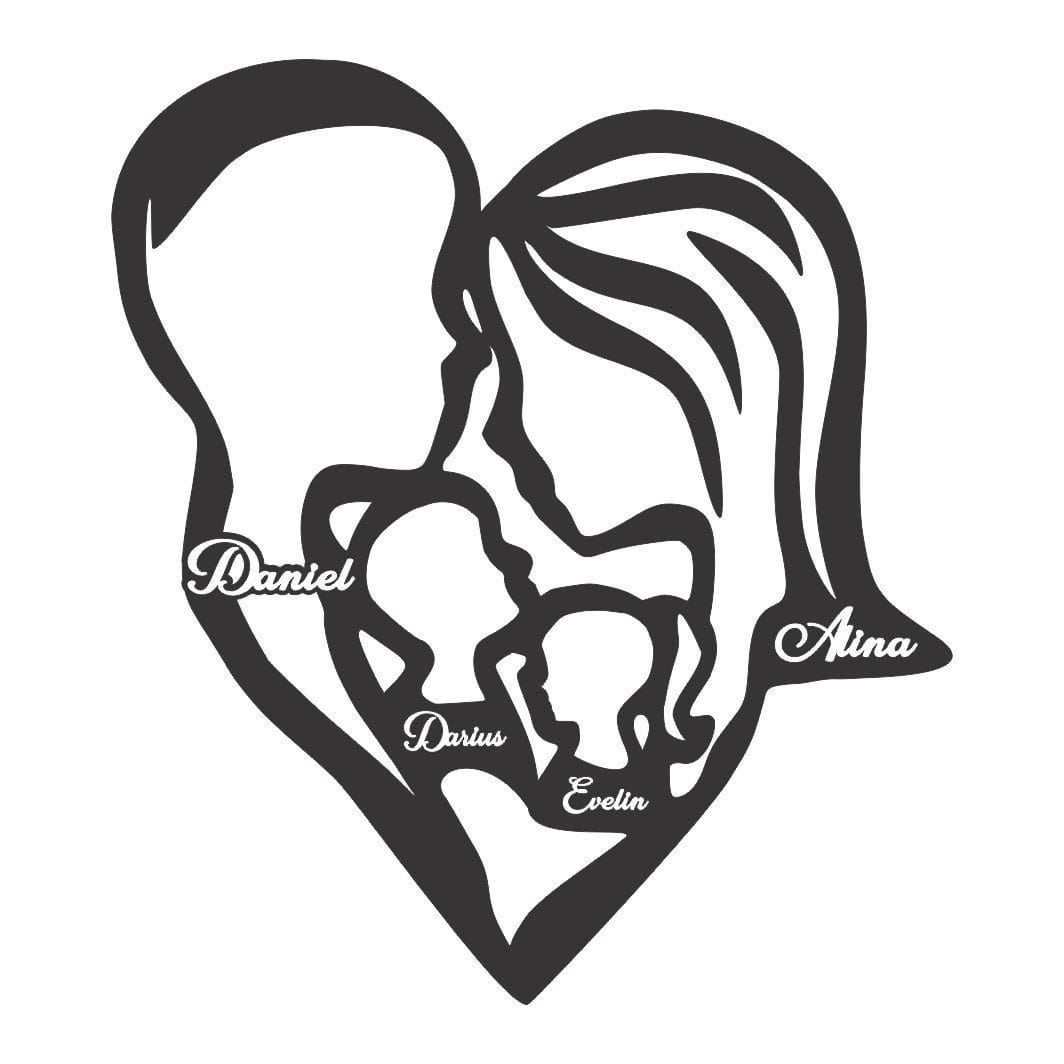 Decoratiune pentru familie personalizata cu numele sotilor si al copiilor.