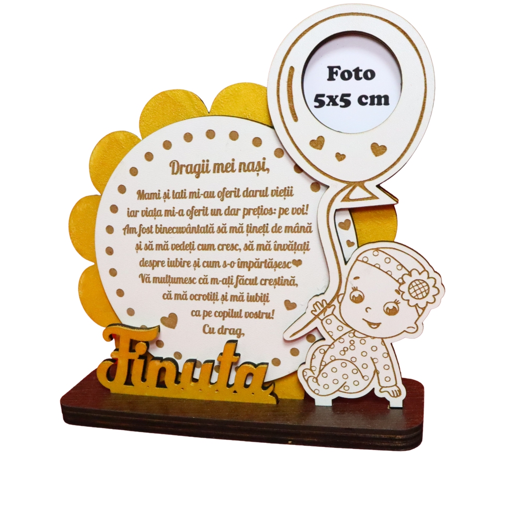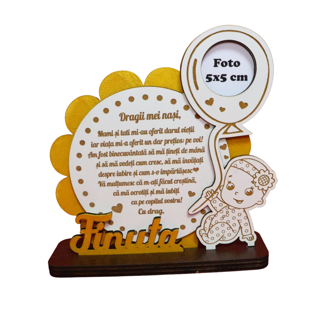 Decoratiune pentru nasii de botez cu loc de poza.